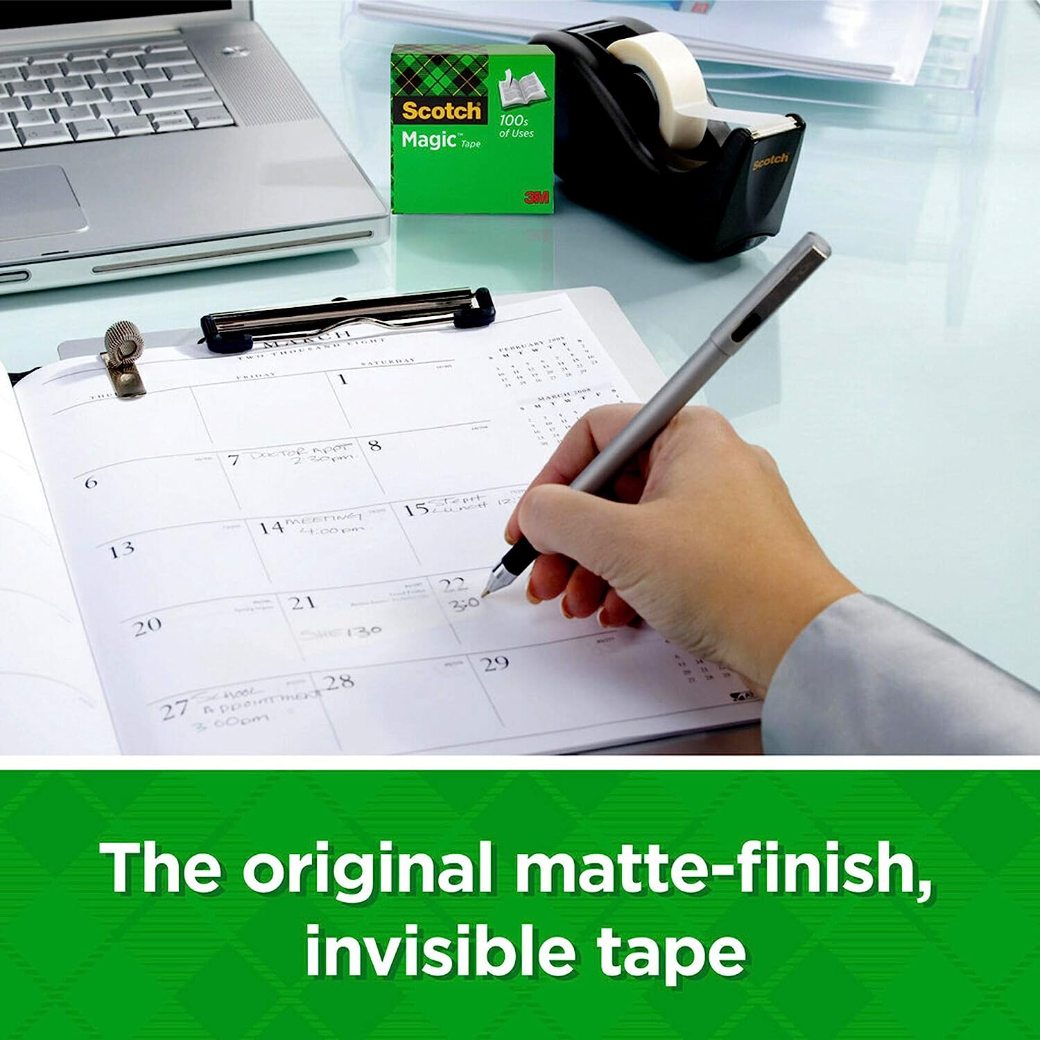 Scotch Magic Tape works as hard as you do to fix all the little imperfections at home, school and the office. The Scotch Brand's famous matte finish invisible tape uses unique 3M adhesive technology to bond tightly with paper and disappear without a trace. Write on it with pencil, pen or marker every word is loud and clear. Scotch Magic Tape: Always ready for big ideas and everyday mends.