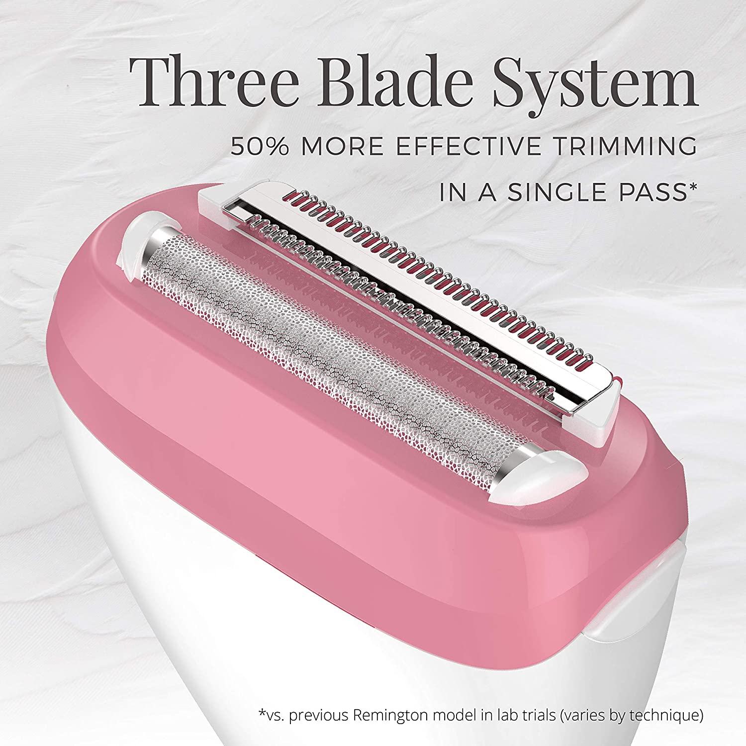 Remington WDF4821US Smooth & Silky Electric Shaver for Women, 3-Blade Cordless Foil Shaver and Bikini Trimmer for Wet or Dry Use, Pink