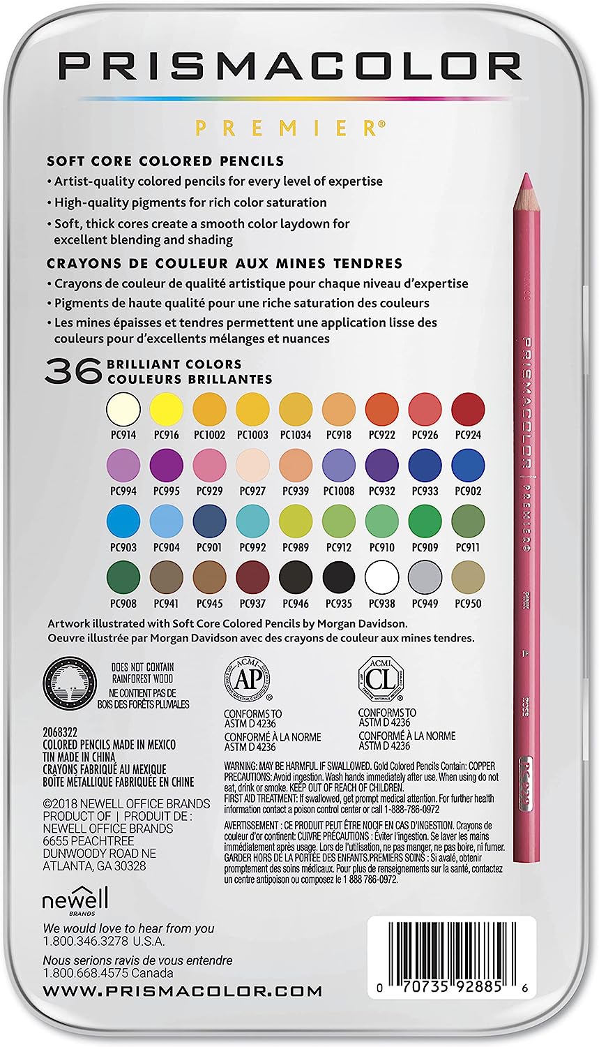 Prismacolor Premier Colored Pencils, Soft Core, 36 Pack