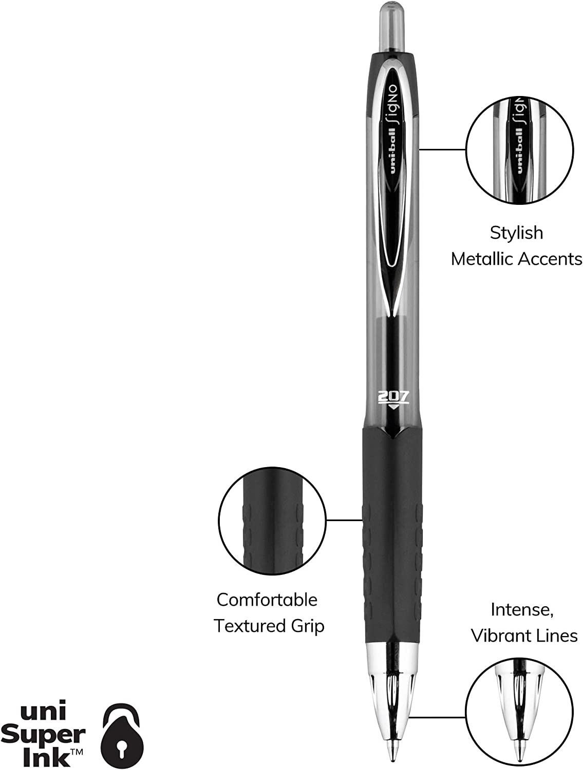 Uni-ball Signo 207 Gel Pen 12 Pack, 0.7mm Medium Black Pens, Gel Ink Pens | Office Supplies Sold by Uniball are Pens, Ballpoint Pen, Colored Pens, Gel Pens, Fine Point, Smooth Writing Pens