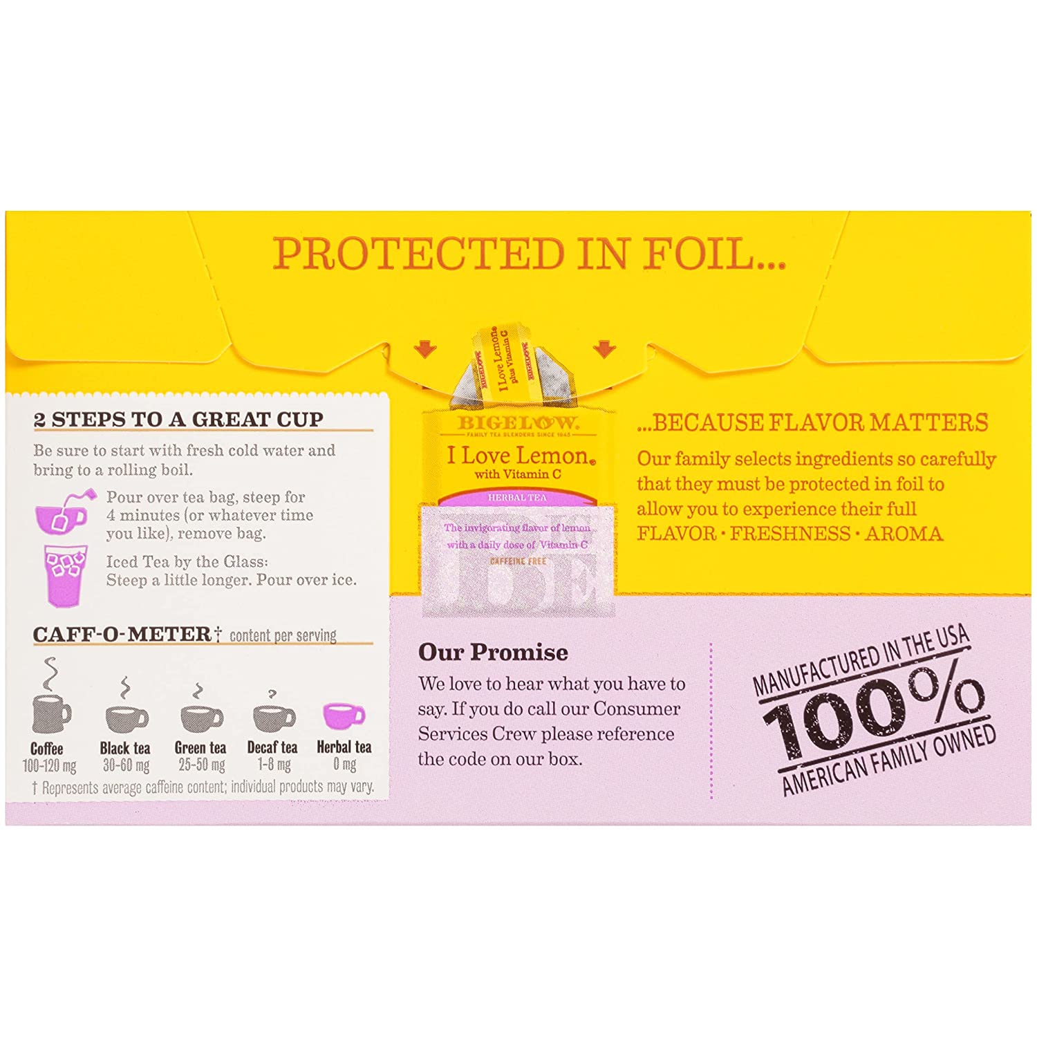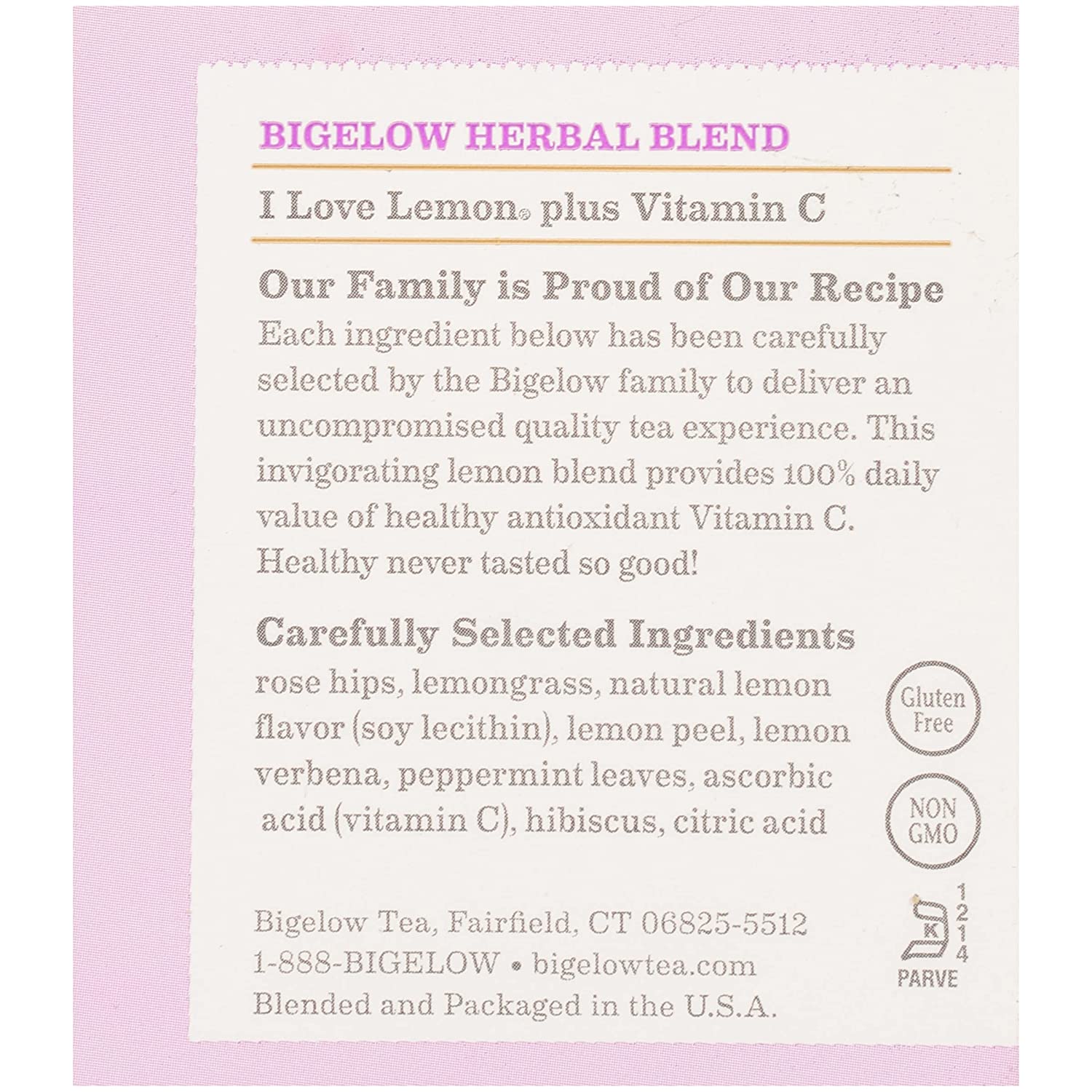 Bigelow Tea I Love Lemon with Vitamin C Herbal Tea, Caffeine Free, 20 Count (Pack of 6), 120 Total Tea Bags