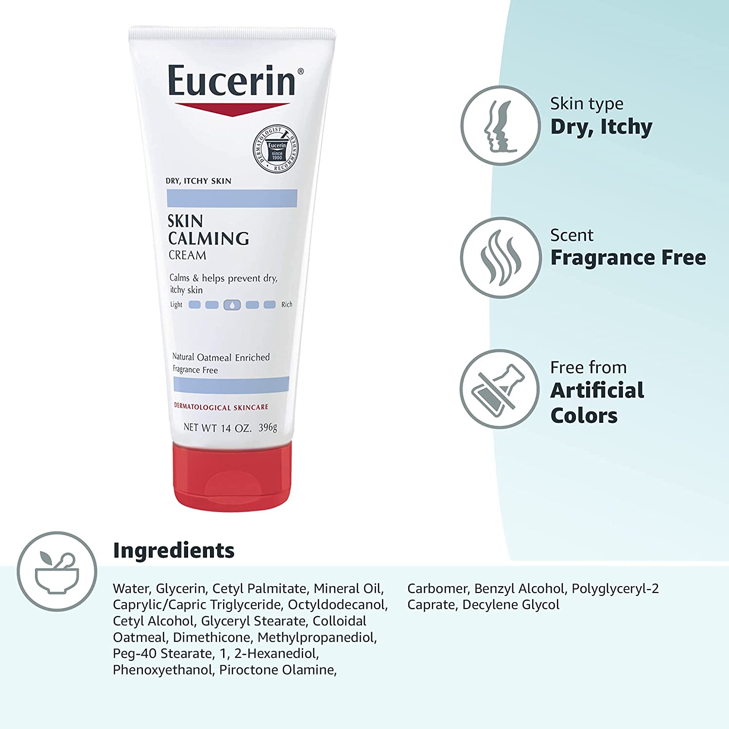 Eucerin Skin Calming Cream - Full Body Lotion for Dry, Itchy Skin, Natural Oatmeal Enriched - 14 oz. Tube