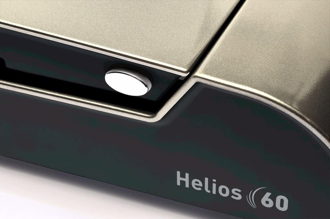 Ideal for frequent use in large offices, the Fellowes Helios 60 Thermal Binding Machine features an auto document thickness detector with auto-binding cycle that selects thermal binding settings for the user. Binds documents up to 600 sheets in a single step. 1-3 minute thermal binding cycle with 4-minute heat-up time. Heat Shield safety barrier prevents accidental contact with the heating plate. Visual indicators signal when machine is ready for thermal binding and heat cycle begins once document is loaded. Ready-beep sounds when thermal binding cycle is complete. Internal clamps hold documents in place during thermal binding process. Auto shut-off safety feature prevents overheating. Stylish design folds flat for storage. For use with thermal binding covers only.