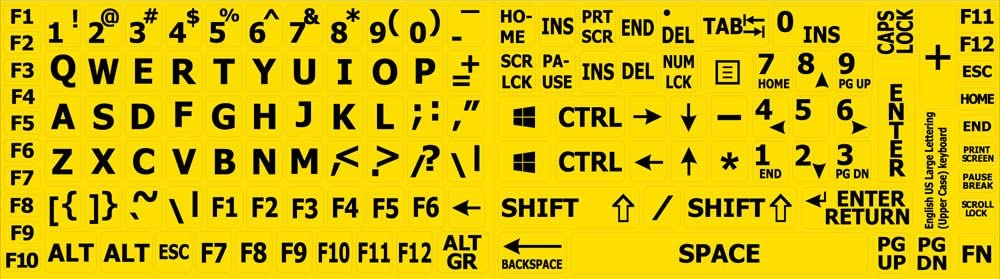High-quality stickers for different keyboards Desktop, Laptop and Notebook. Stickers are made of high-quality non-transparent (white, yellow, black, light grey) - matt vinyl, thickness - 80mkn, typographical method. Applying stickers on you keyboard properly once, and you can be aware that letters will stay for ever. LARGE LETTERING Keyboard Stickers designed with care of people. LARGE LETTERING Keyboard Stickers designed to be used by children and their parents who want their young explorers to learn more and faster, people with poor vision, having difficulties reading small letters and others with certain health conditions. LARGE LETTERING Keyboard Stickers are widely used at schools, libraries, long term care facilities as well as special need departments and organizations. Ideal for any age group People who have hard time seeing standard keyboard characters Easy to see even in poor lighting Recognized and approved by ophthalmologist and therapists all over the world What you're offered now is high-quality stickers, intended to simplify you work and enjoy it while doing it on computer. OUR MOTTO IS - QUALITY! The product listed above is copyrighted, has been manufactured and distributed by Royal Galaxy Ltd. Usage of the images posted, distribution or resale has NOT been authorized by Royal Galaxy Ltd, and is in direct violation of its written terms. Federal law provides severe civil and criminal penalties for the unauthorized usage, distribution or resale of copyrighted product, its listings with all imaged posted. For all requests regarding usage of images of this product, its distribution and resale, please contact us by email.