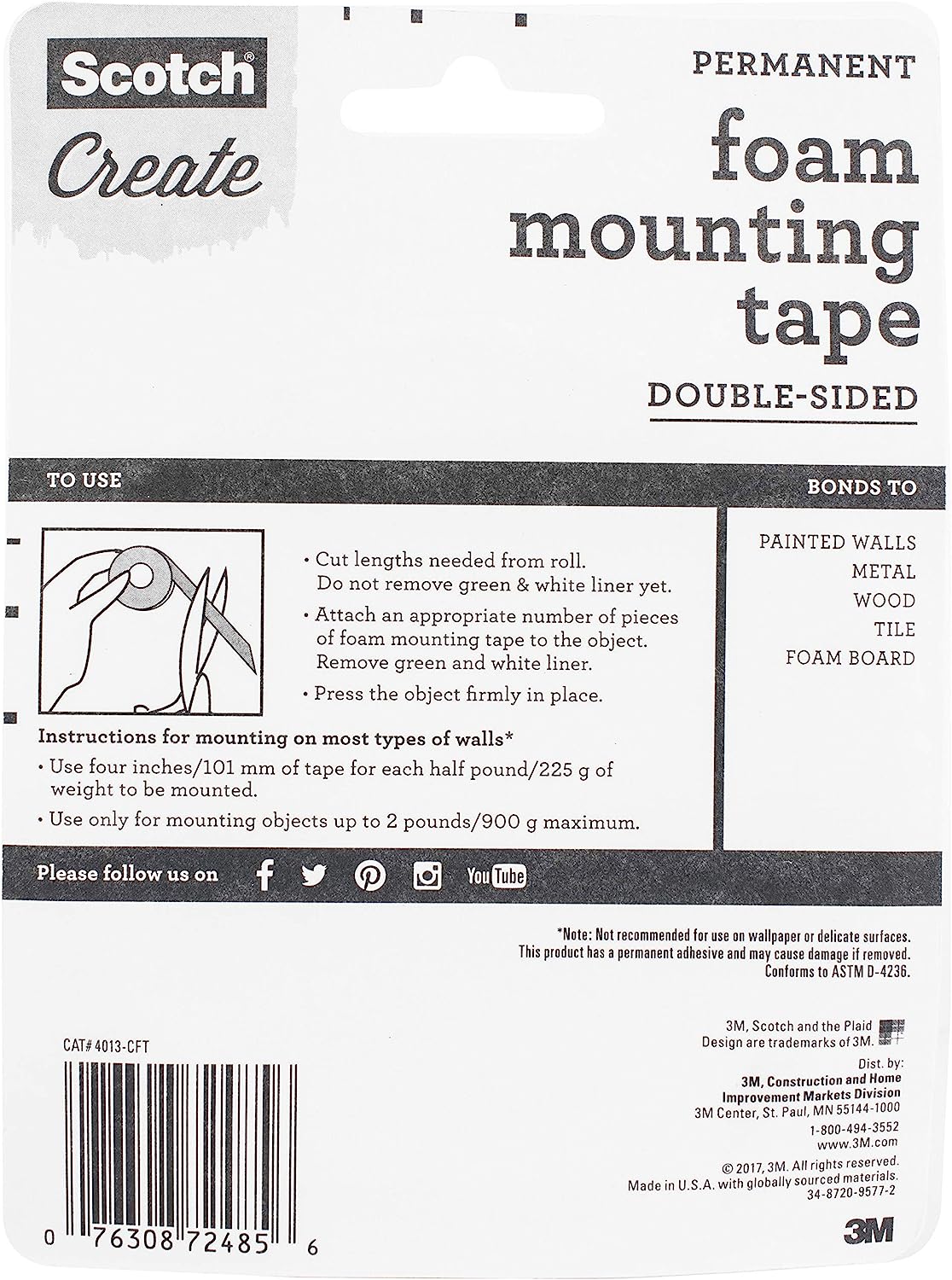 Scotch Mounting, Fastening, & Surface Protection Scotch Foam Mounting Tape, 1/2-inch x 150-inches, White, 1-Roll (4013), 1/2"x150", Clear