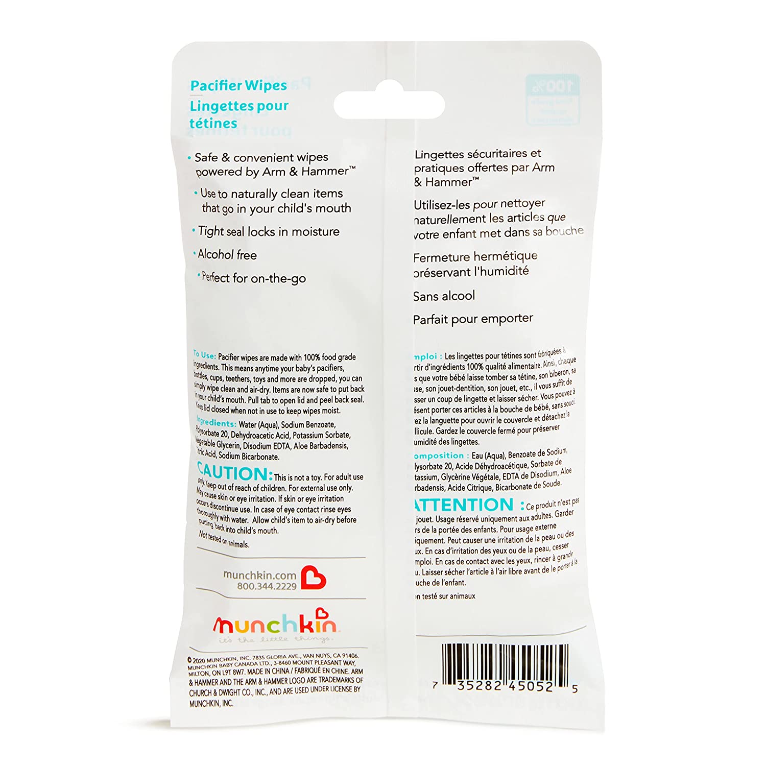 Munchkin Arm & Hammer Pacifier Wipes - Safely Cleans Baby and Toddler Essentials, 1 Pack, 36 Wipes