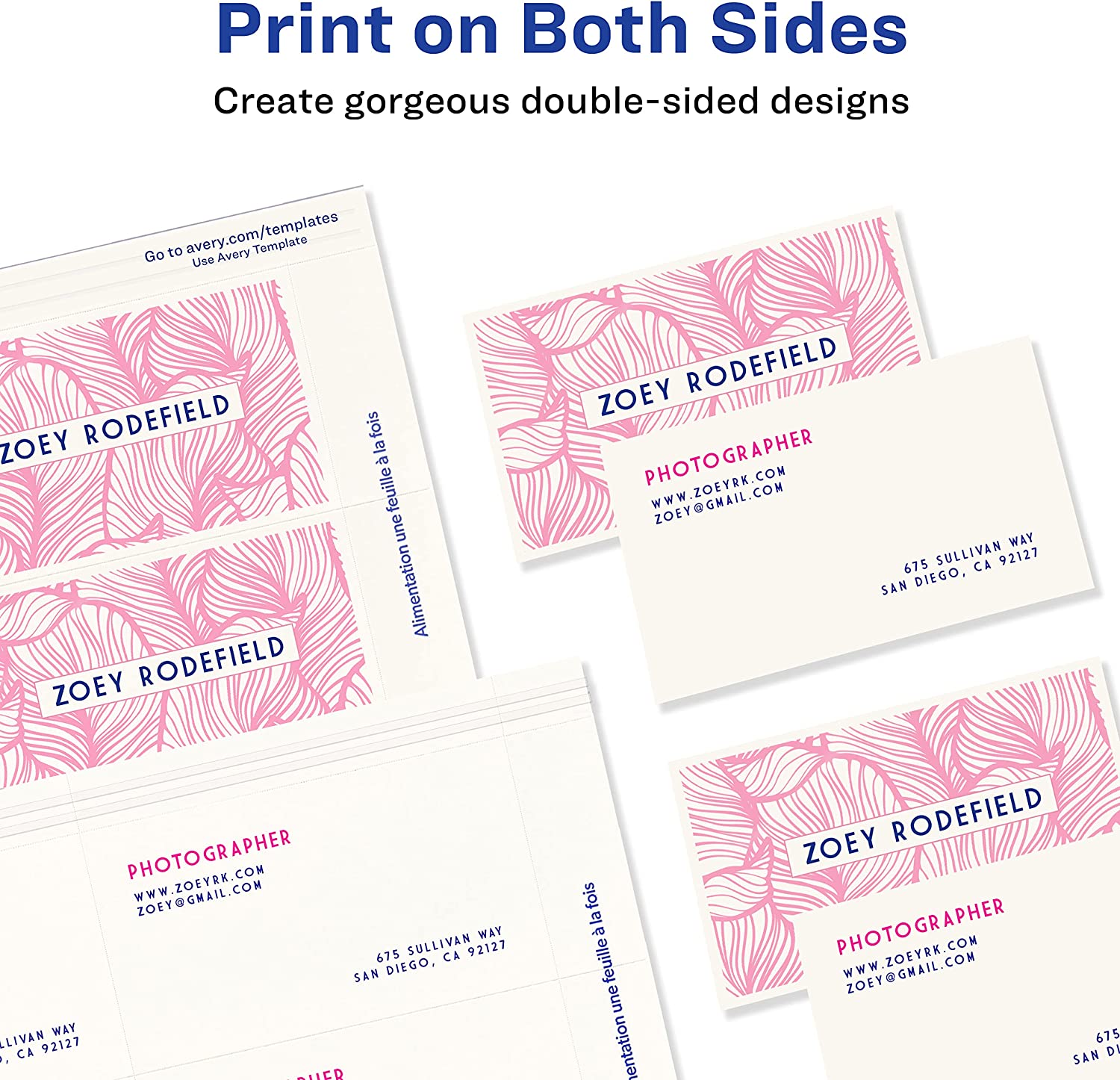 Get professional quality business cards without having to pay the professionally printed price. Avery 8859 Clean Edge Business Cards includes 200 customizable business cards made from premium glossy cardstock (matte on back) with weight of 83lbs / 227gsm, and offers a high-quality blank canvas optimized for printing vibrant colors and sharp, clear text. If you need customizable business cards, customer loyalty cards, appointment reminder cards or more, these 2" x 3.5" cards are an exceptional way to stand out from the crowd. These white business cards have innovative Clean Edge technology for quick and easy separation, giving you the cleanest, smoothest edges of any business card on the market. Also, proprietary Avery Sure Feed technology helps reduce misalignments, minimize paper jams, and avoid wasted projects when printing on your inkjet printer. Whether you have your own design or you're creating one from scratch, take your brand or business to the next level with Avery Design & Print Online, which makes it easy to create and print double-sided customizable cards from your own home or business. The free browser-based software has everything you need to design business thank you cards, appointment cards, rsvp cards for weddings, reward cards and more. Try it out today on the Avery website and print at home or in the office on your inkjet printer.secures your card or insert in place, while the clear plastic badge window allows unobstructed visibility without needing to remove it from the holder. Each badge holder is pre-punched to accommodate the included 36" non-elastic neck cord or other attachment devices like clips, lanyards or reels (other attachments not included). These badge card holders are also compatible with Avery Badge Inserts 5390 and 5392 (inserts sold separately), making them great for custom name tags, name tags for kids and more. The size is also perfect to use as vaccine card holders (vaccine card sizes may vary, so please measure your card first to confirm fit). Item comes with 100 plastic badge holders and 100 neck cords.