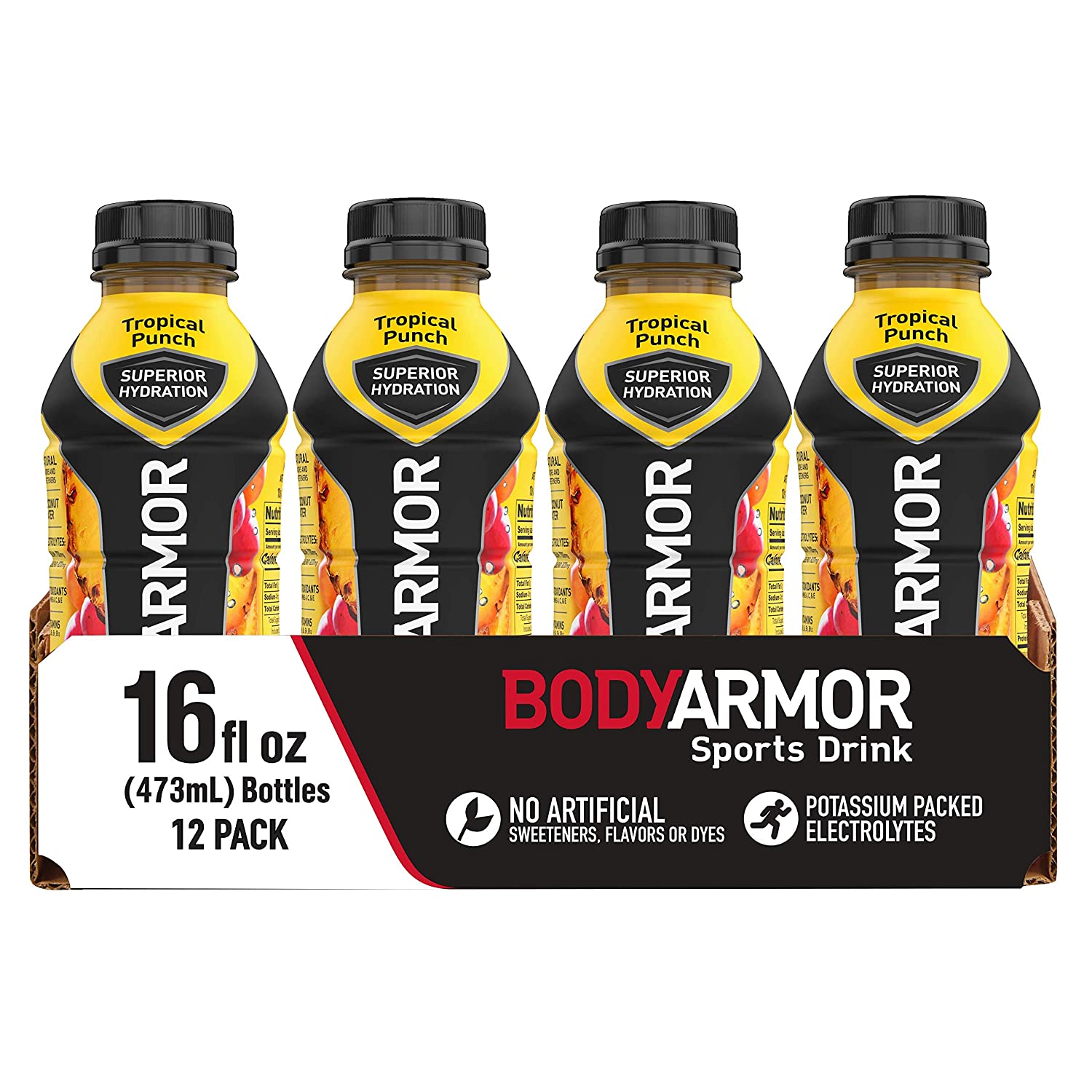 BODYARMOR Sports Drink Sports Beverage, Tropical Punch, Natural Flavor With Vitamins, Potassium-Packed Electrolytes, Perfect For Athletes, 16 Fl Oz (Pack of 12)