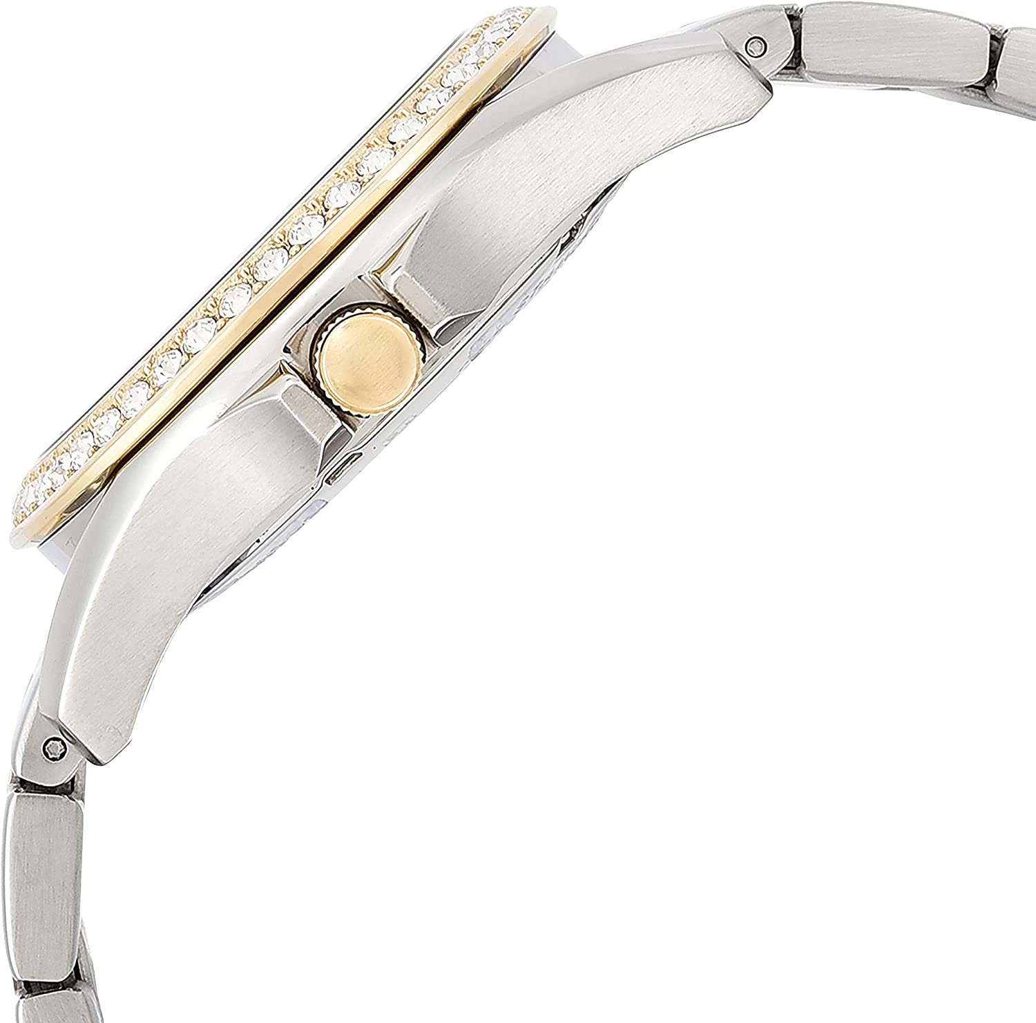 • Two-tone stainless steel case with silver dial; silver and gold-tone stainless steel bracelet band; links can be removed for a customized fit