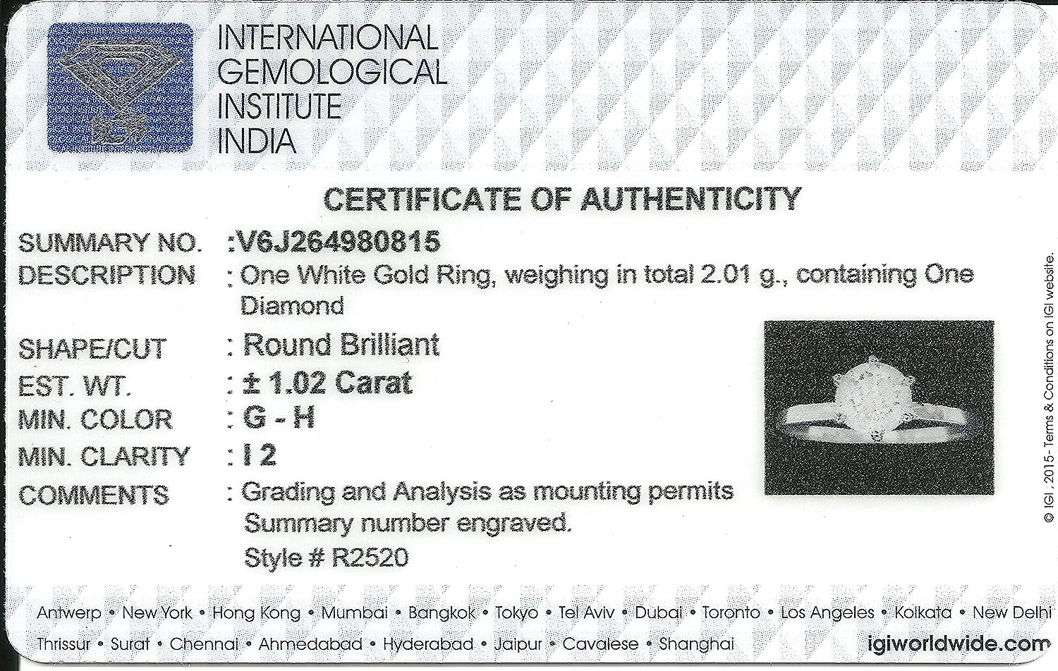 Dazzlingrock Collection IGI Certified 1.02 Carat (ctw) 14K Real Round Diamond Ladies Engagement Solitaire Ring, White Gold