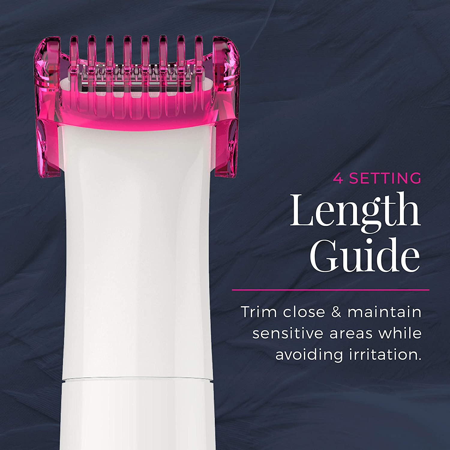 Sleek is simple with the REMINGTON Smooth & Silky Body & Bikini Kit. The bikini trimmer and adjustable length guide are perfect for quick touch-ups and shaping the bikini line or even the face. The angled foil shaver gets you extra close, with a foil to help prevent skin irritation. The rotating exfoliator helps prevent ingrown hairs and razor burn, and you can find your most comfortable trim with the wet/dry design. Plus, the included beauty bag keeps the kit organized for storage and travel.
