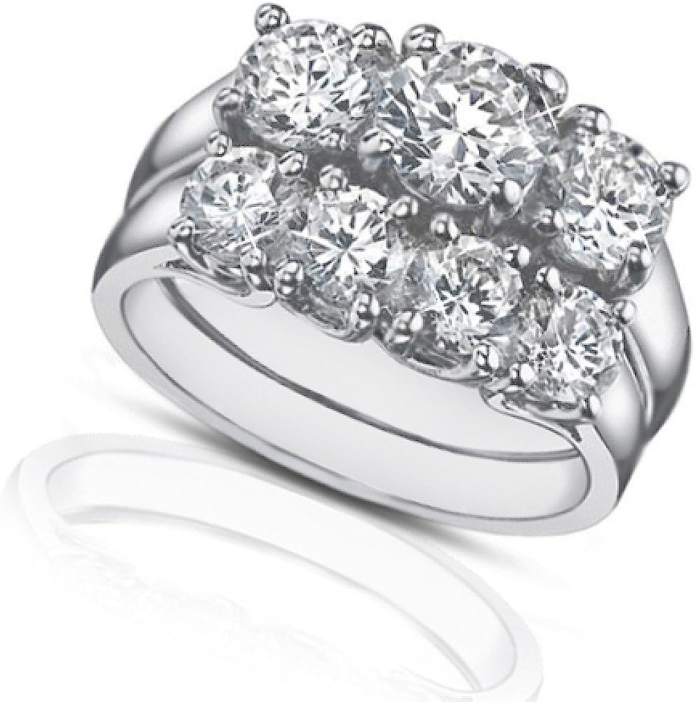 Madina Jewelry 2.25 Ct Three Stone Round Diamond Engagement Ring with Wedding Band in Platinum