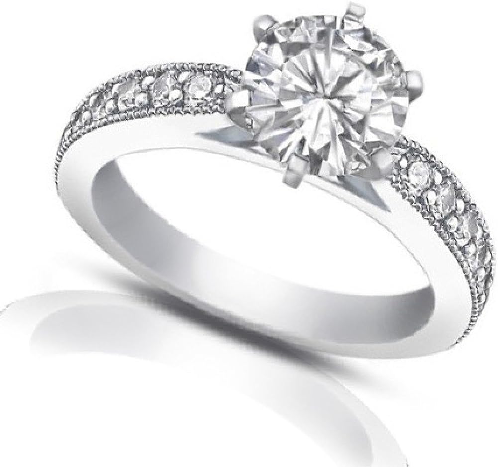 Madina Jewelry 1.40 ct Round Cut Diamond Engagement Ring Whit Millgrain on The Shank in 14 kt White Gold