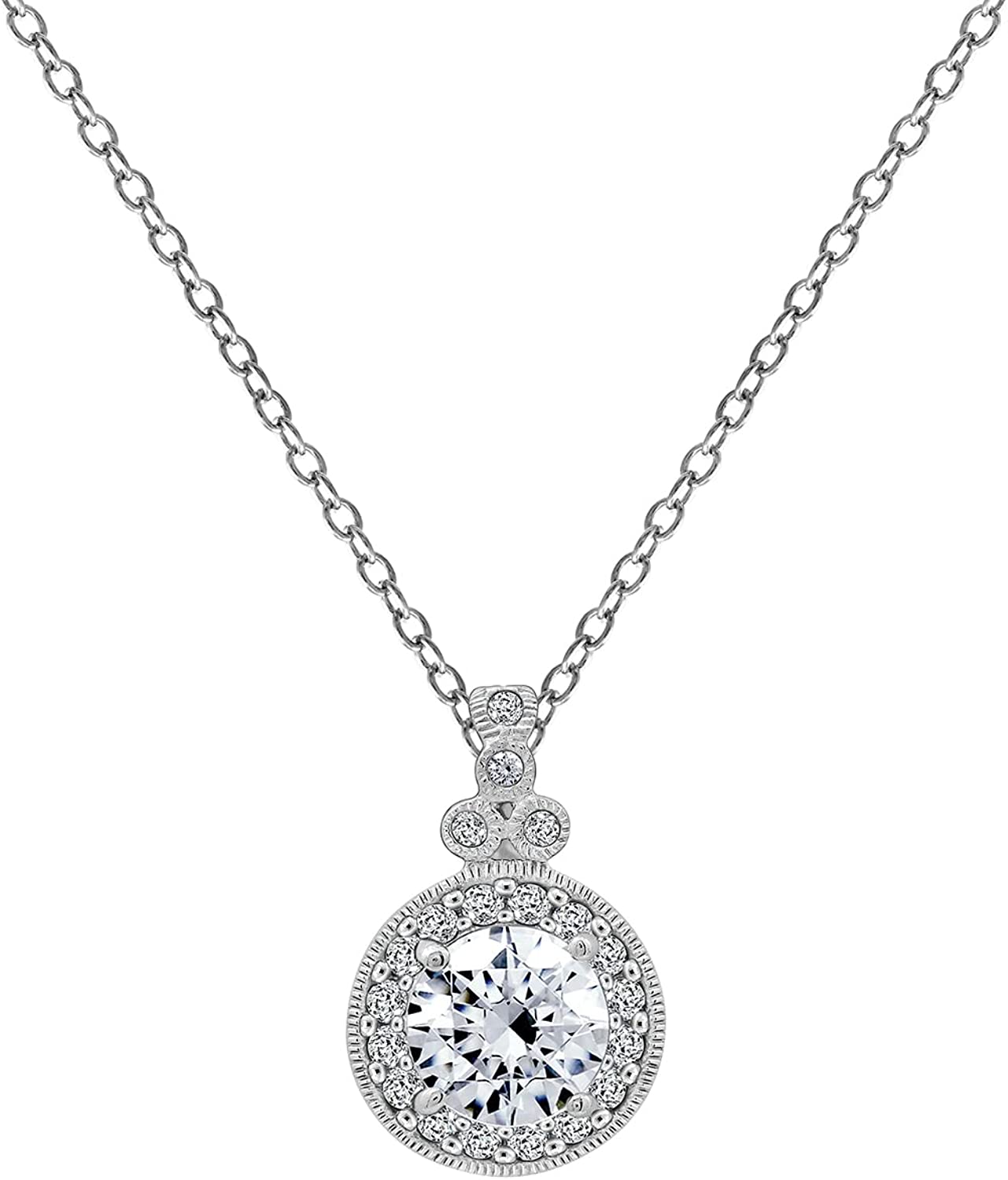 Argos Collection Platinum-Plated Sterling Silver Infinite Elements Zirconia Round-Cut Antique Pendant Necklace
