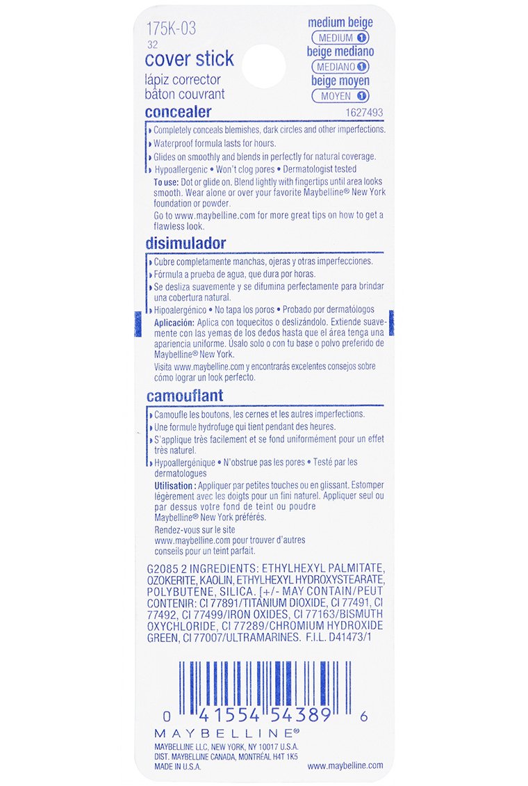Maybelline New York Cover Stick Concealer, Medium Beige, Medium 1, 0.16 Ounce