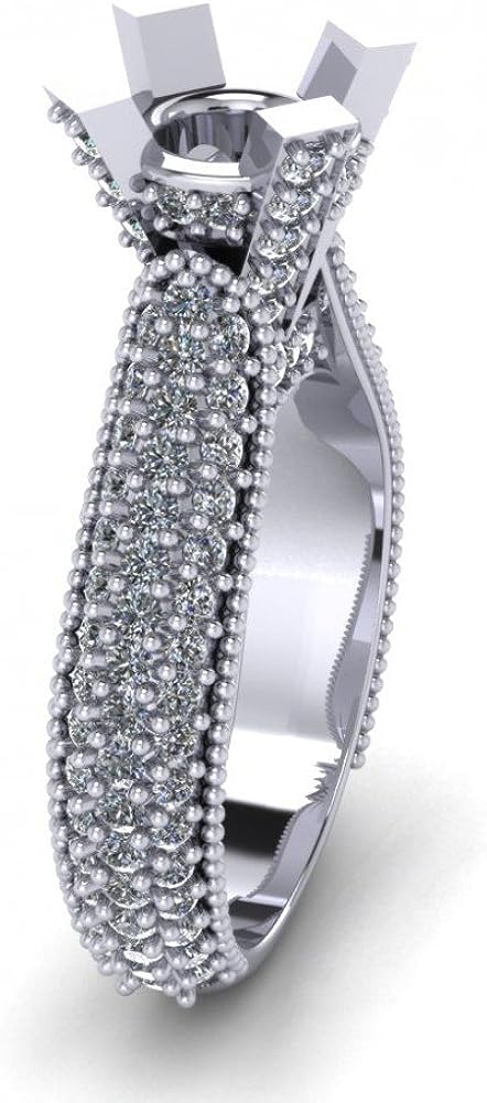 Madina Jewelry 1.90 ct Ladies Round Cut Diamond Semi Mount Ring in Pave Setting in Platinum