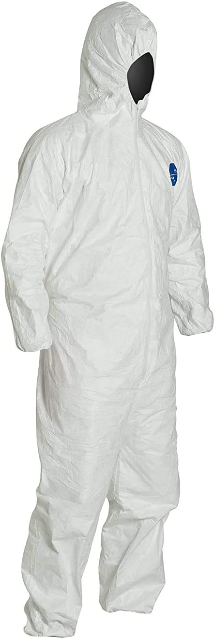 Tyvek by Dupont sets the standard for work coveralls. Use for painting, spraying, pesticides, other harmful chemicals. White disposable suit has elastic wrists, ankles and hood for a tight seal everytime.