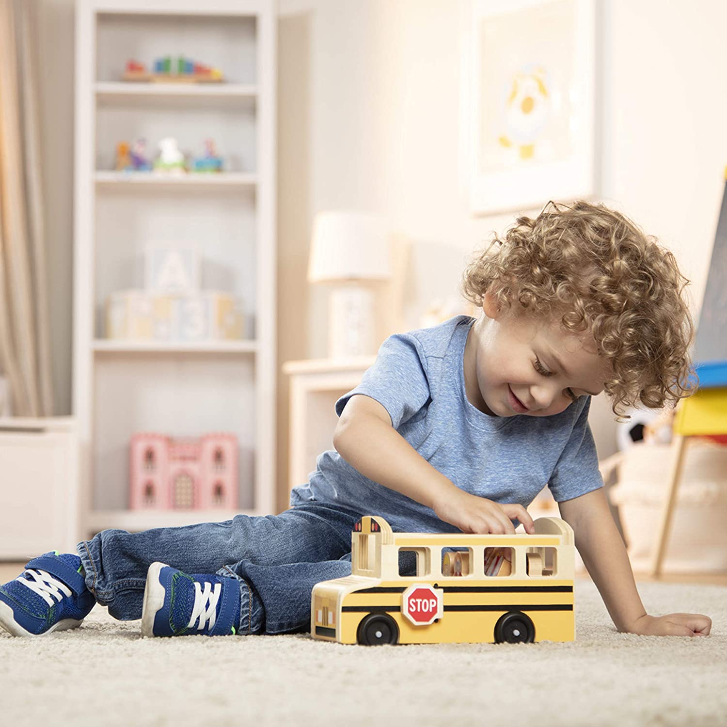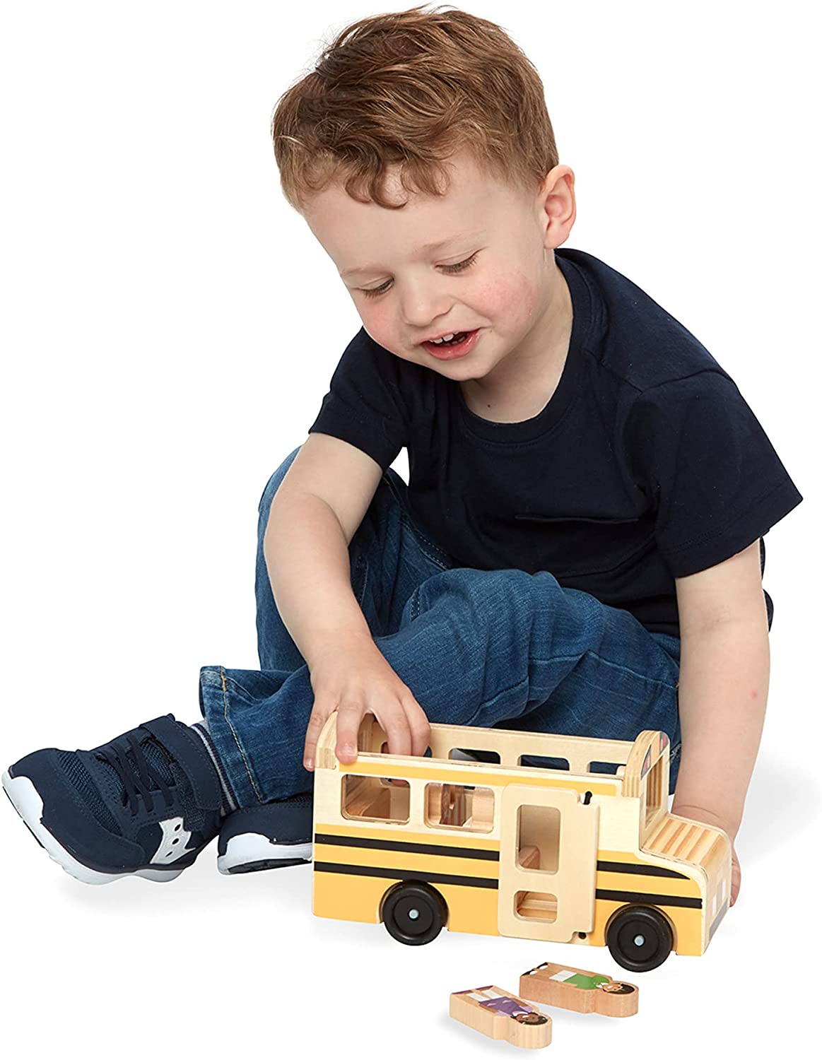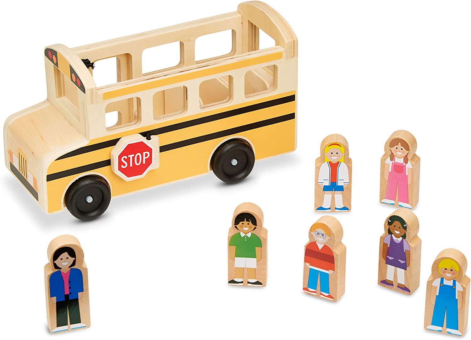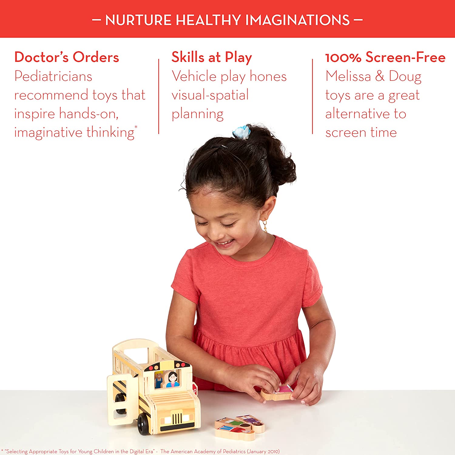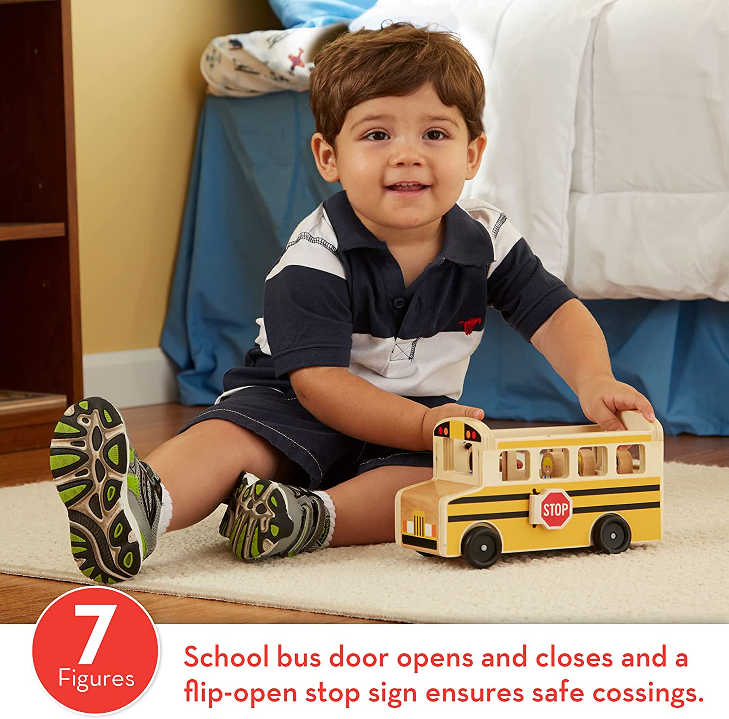 Melissa & Doug School Bus Wooden Play Set With 7 Figures - School Bus Toddler Toy For Pretend Play, Classic Toys For Kids