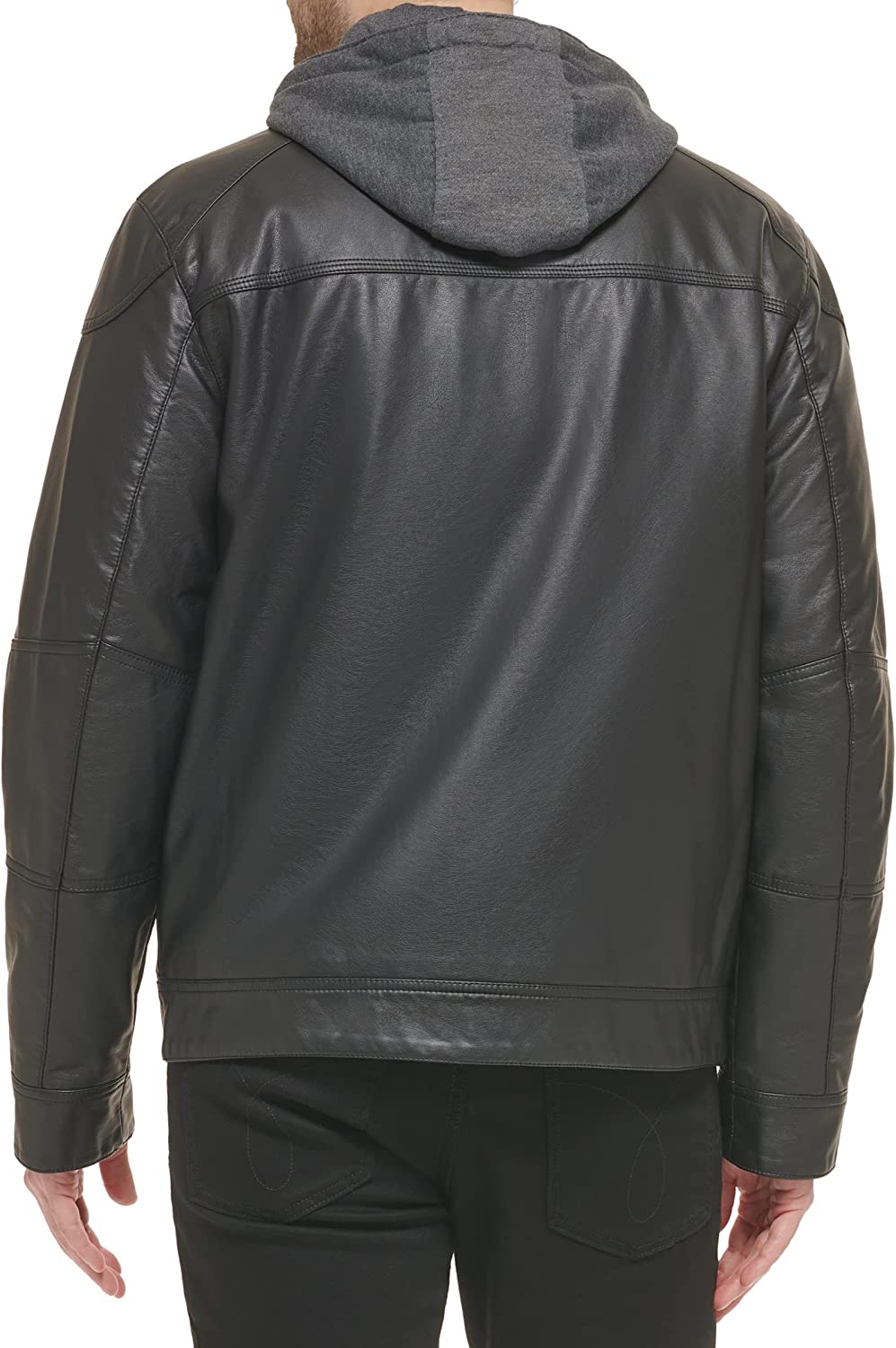 • Coat description: This faux leather jacket-men is style meets function with its removable sweatshirt, motorcycle jacket collar, snap closure, and exterior stitching