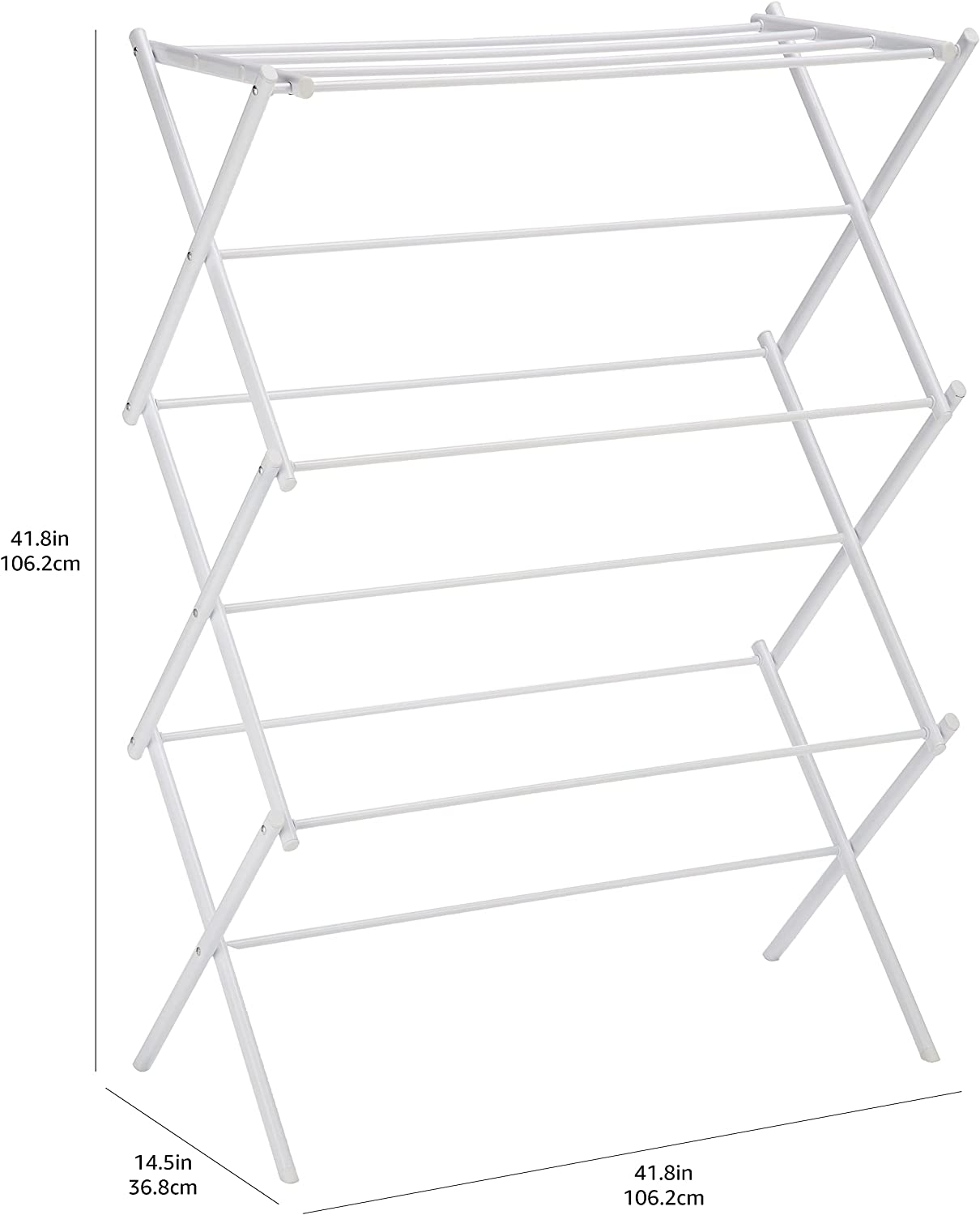 Amazon Basics Foldable Laundry Rack for Air Drying Clothing - 41.8" x 29.5" x 14.5", White