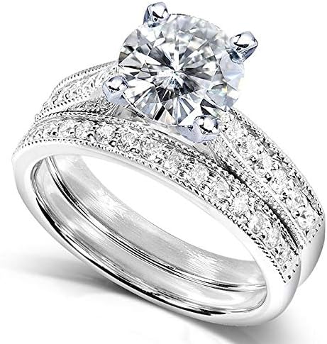 Kobelli Round Moissanite Pave-Set Bridal Set 1 4/5 CTW 14k White Gold