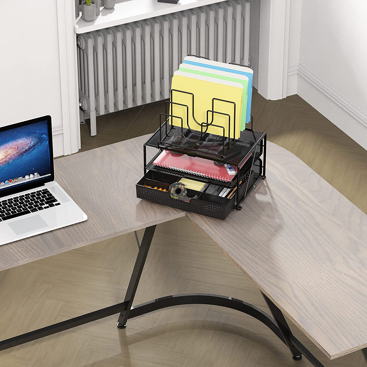 MaxGear Mesh Desk Organizer Office Desktop Organizer with Drawer, Metal Stationary Organizer Black Desk Caddy, 6 Compartments, 8.7 x 5.5 x 5 inch, 1 Pack