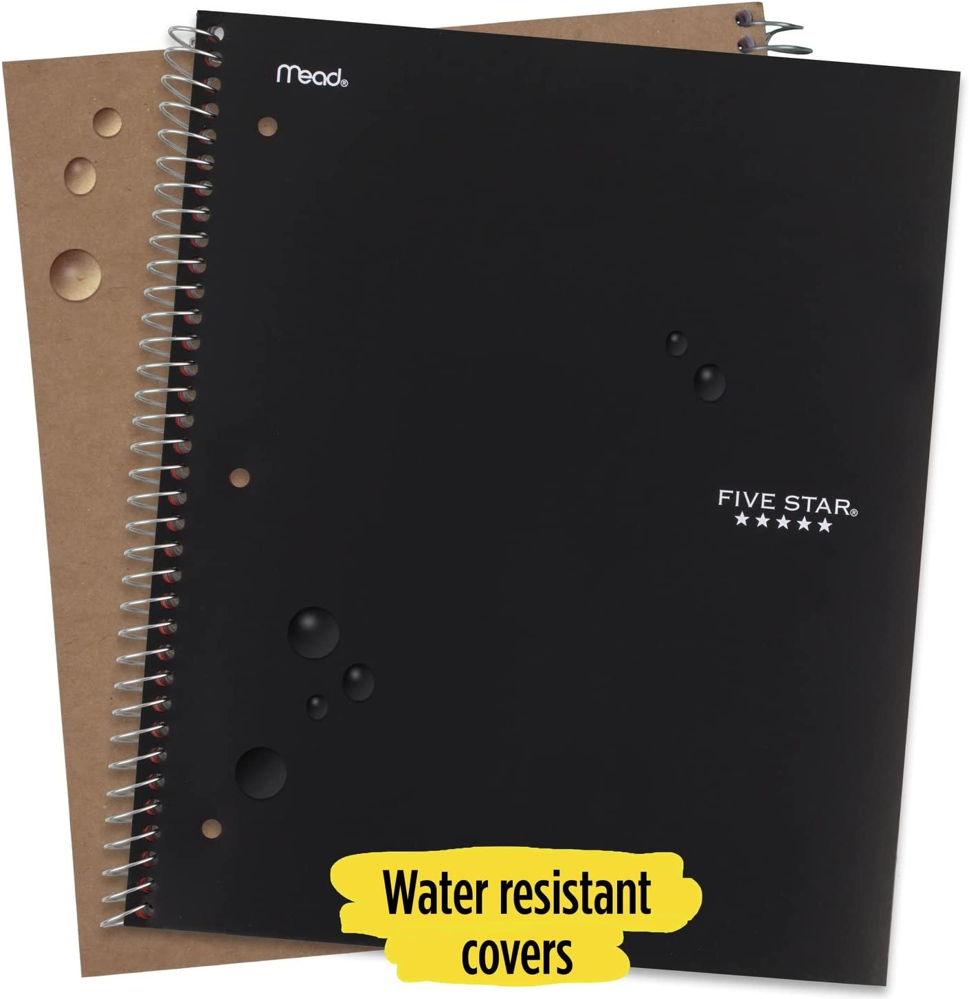 • Tough pockets help prevent tears and hold 8-1/2" x 11" loose sheets and handouts. Two 2-pocket dividers keep subjects organized. Covers are water resistant to protect your notes and our Spiral Lock wire helps prevent snags on clothes and backpacks.