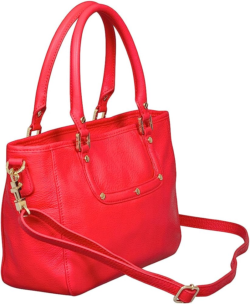 Double rolled leather handles and removable, adjustable shoulder strap