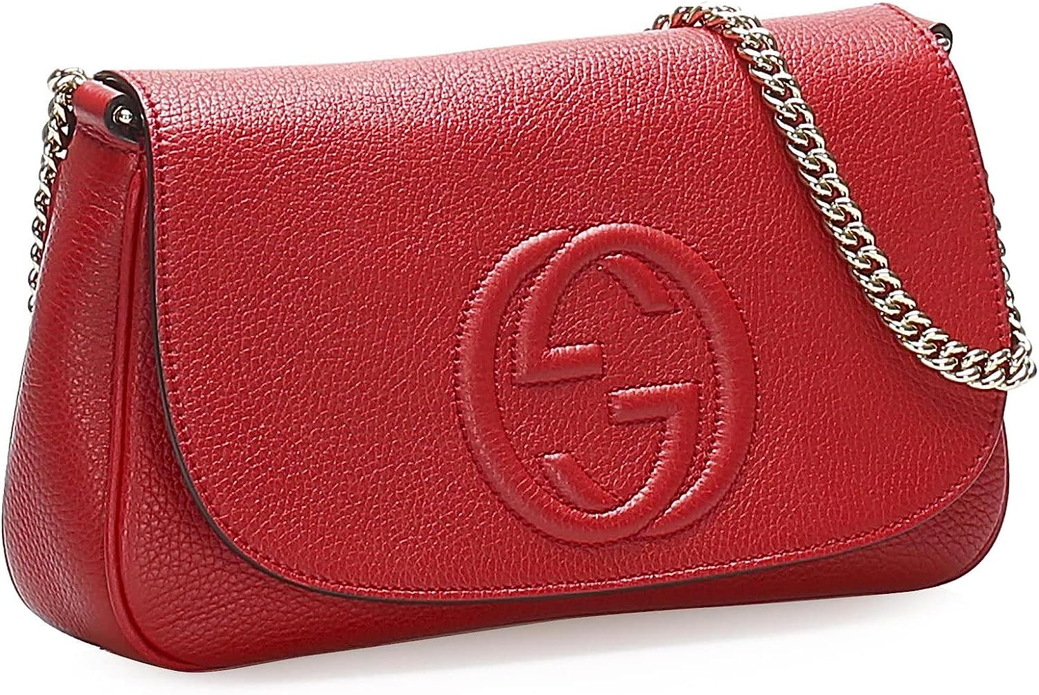 Gucci Soho Interlocking GG Red Leather Chain Flap Shoulder Bag Handbag Italy New