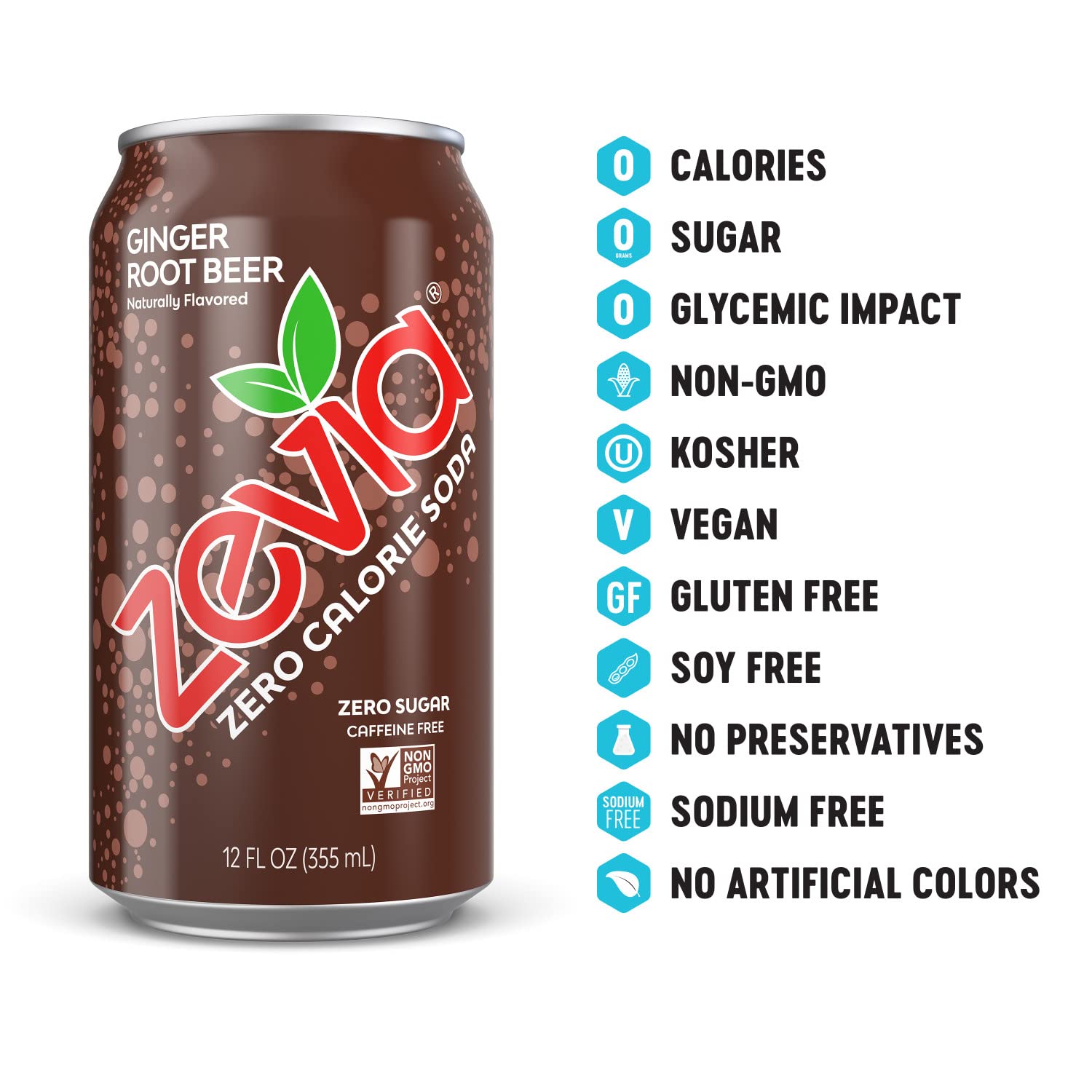 Zevia Zero Calorie Soda, Ginger Root Beer, 12 Ounce Cans (Pack of 24)