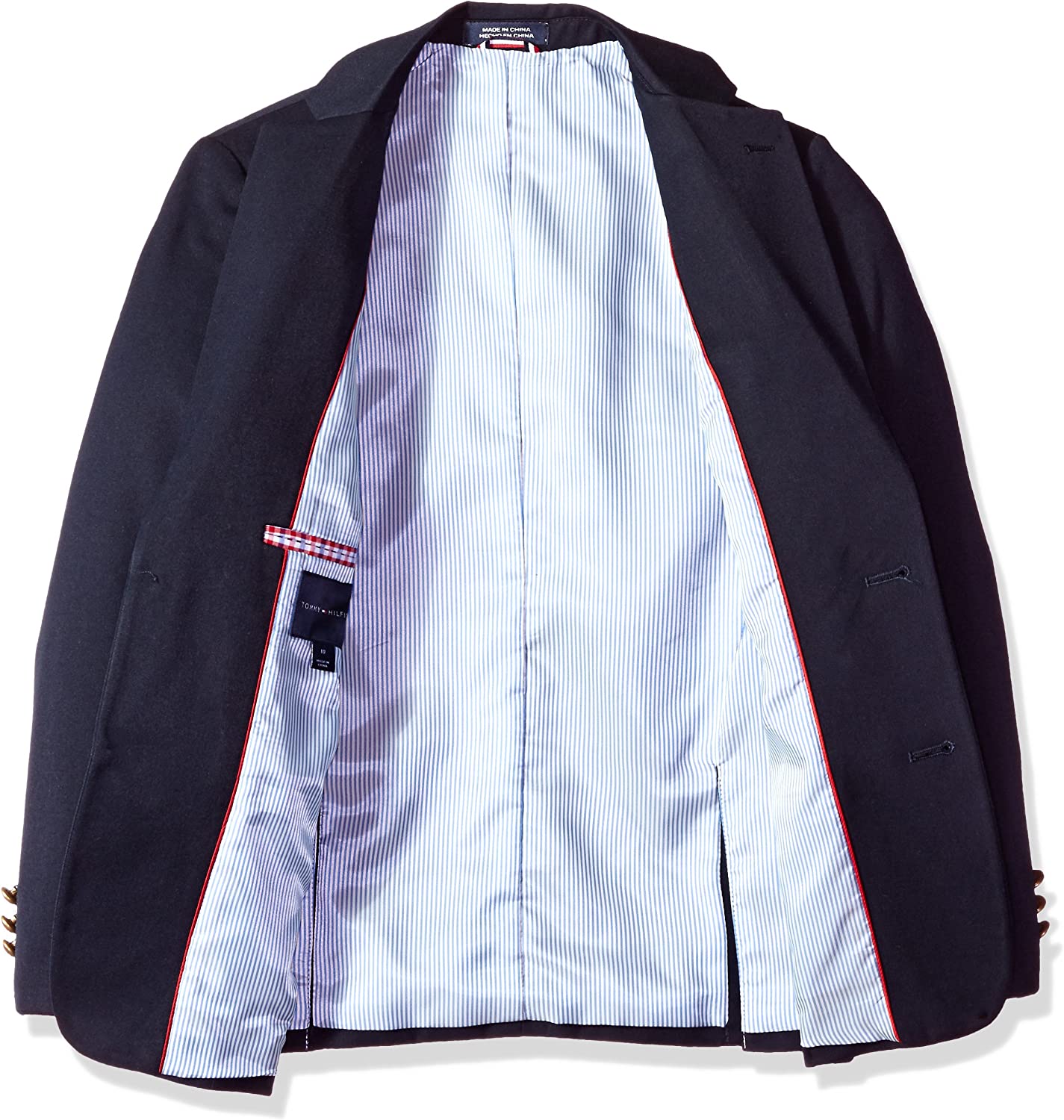 Tommy Hilfiger Boys' Alexander Blazer, Single Breasted with Pocket Square, Solid Color with Stripe Lining