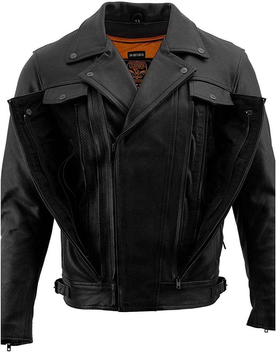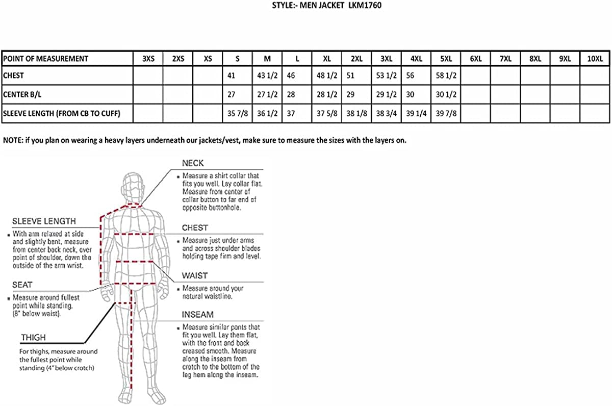 ✅ Durable || Constructed from high-quality genuine leather. Our motorcycle jacket men is the perfect choice for bikers who want a durable and long-lasting biker jacket that can withstand the rigors of the road. Police Jacket comes in a wide range of size (X-Small to 5X-Large) and the regular fit is suitable for men of all sizes, also comes in different styles