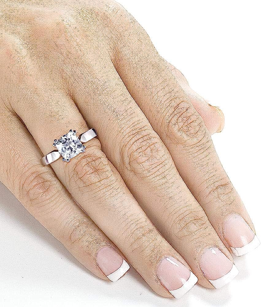 3ct Ruby Engagement Ring White Gold 14K-18K White Gold Ring 3 carat Ruby Engagement Ring Unique Jewelry for Her - June (Natural Ruby)