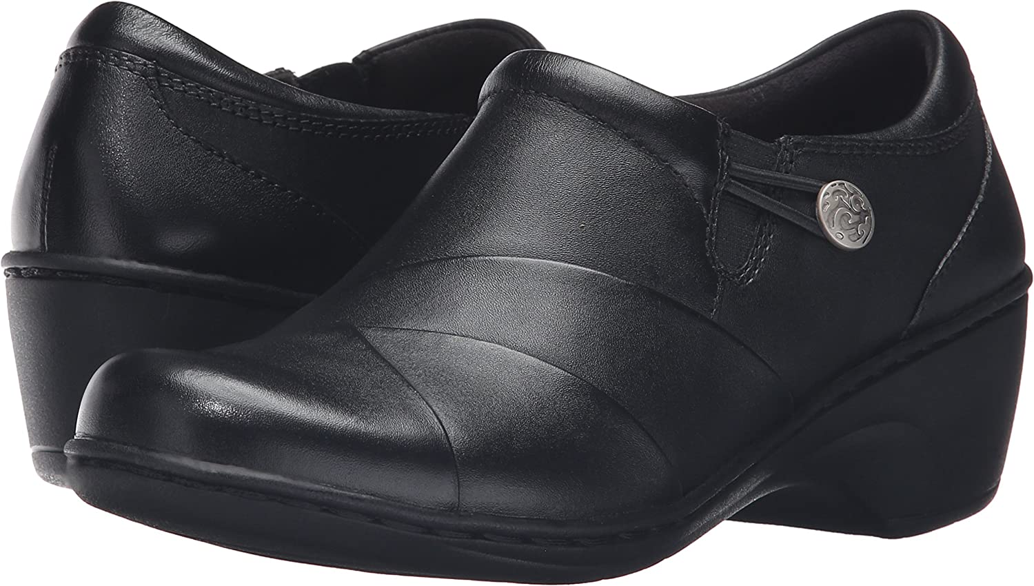 This women's shoe from the Clarks collection delivers comfort right out of the box. It features soft fabric linings, ortholite cushioned foot bed, and super lightweight, shock-absorbing eva outsoles. Its wear-everywhere style is the perfect fit for various occasions; from office meetings to weekend get-togethers.