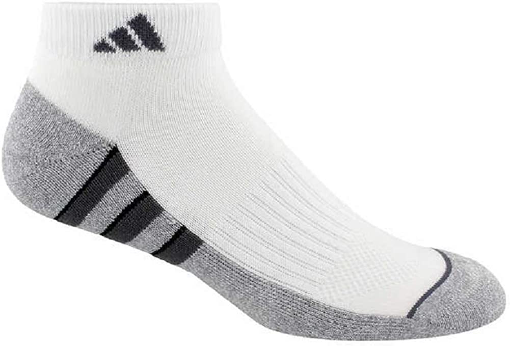 6 pair of low cut Moisture Wicking mens socks from Adidas. These socks are Full Cushioned Footbed and Reinforced Heel & Toe. Features: Adidas Colors: White Moisture wicking Extended full cushion footbed 360° textured arch compression Mesh toe cooling channel Reinforced heel & toe Durable welt cuff Smooth toe seam Men’s Regular: Sock size 10-13 (fits shoe size 6-12)
