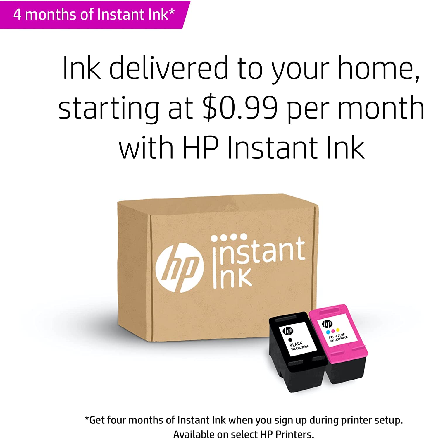 • Ink delivered to your home: get your first 4 months free when you enroll in HP Instant Ink (optional) during printer set up; plans starting at 0.99 dollar per month after the trial period, shipping and recycling included