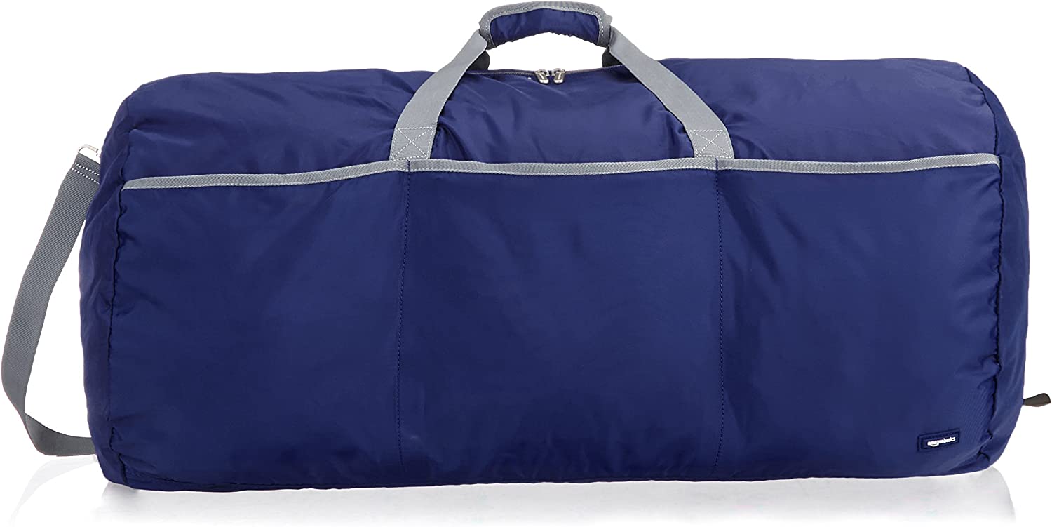 Navy Blue, large rectangular-shaped duffel bag with roomy interior (over 6,000+ cubic inches); ideal for travel or storage