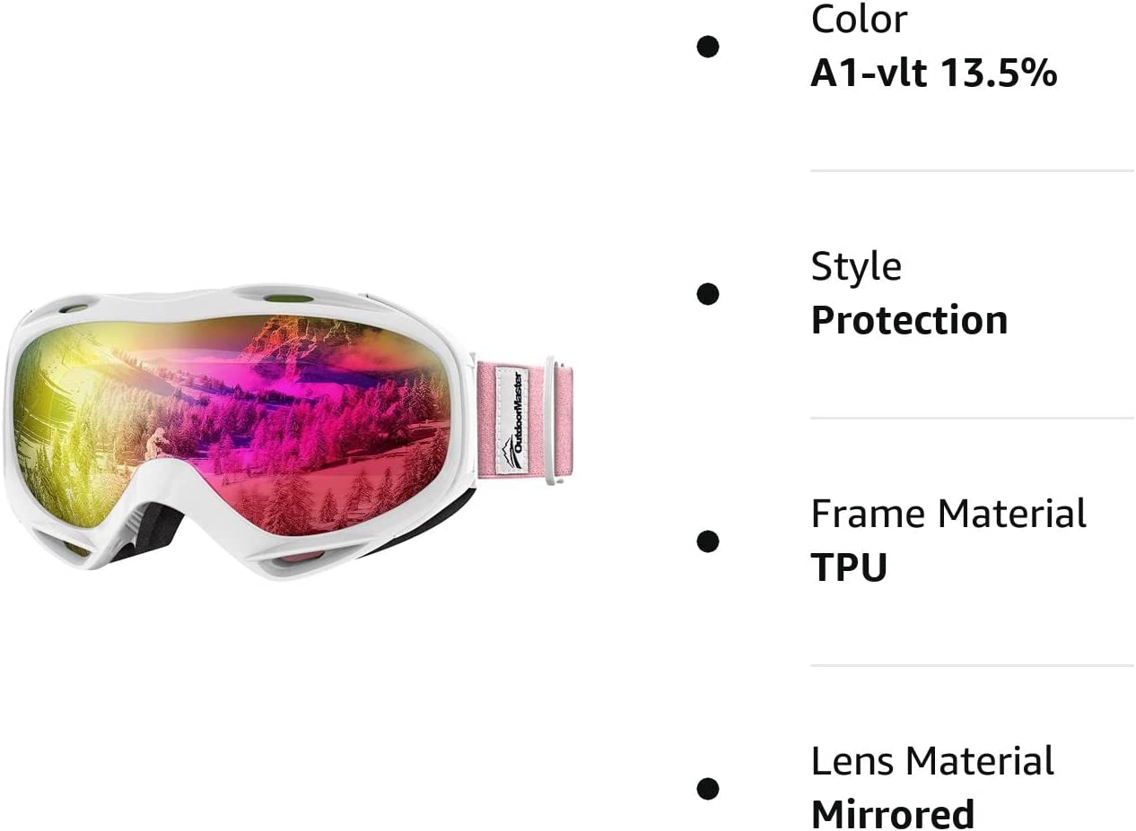 OutdoorMaster Ski Goggles OTG - Over Glasses Ski/Snowboard Goggles for Men, Women & Youth - 100% UV Protection