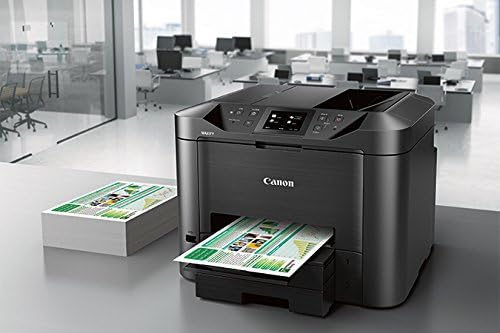 The Canon MAXIFY MB5420 Wireless Small Office All-In-One Printer is designed to meet the needs of smaller businesses with up to nine users, by delivering high-quality, low-cost prints. It boasts a quick first printout time as fast as 6 seconds with fast print speeds up to 24 ipm (B&W)/15. 5 ipm (Color) getting your prints you need when you need them. Power through paperwork with single-pass duplex scanning which simultaneously scans both sides of two-sided documents, enabling fast multi-page copying and scanning. The MB5420 is built for big jobs with a 500 sheet paper tray capacity, and a high page yield of 2500 B&W/1500 color prints when using XL ink tanks. Always stay connected and informed with built-in standard Management Information Base (MIB) support, which allows you to easily manage the MAXIFY printers on your network. Built-in Wi-Fi networking makes it easy to connect and print from your computer and favorite mobile devices, and with the Canon PRINT app, you have the added features of being able to print from the cloud and scan directly to your mobile device. Best of all, the MB5420 printer is backed by 100% U. S. -based customer service & support.