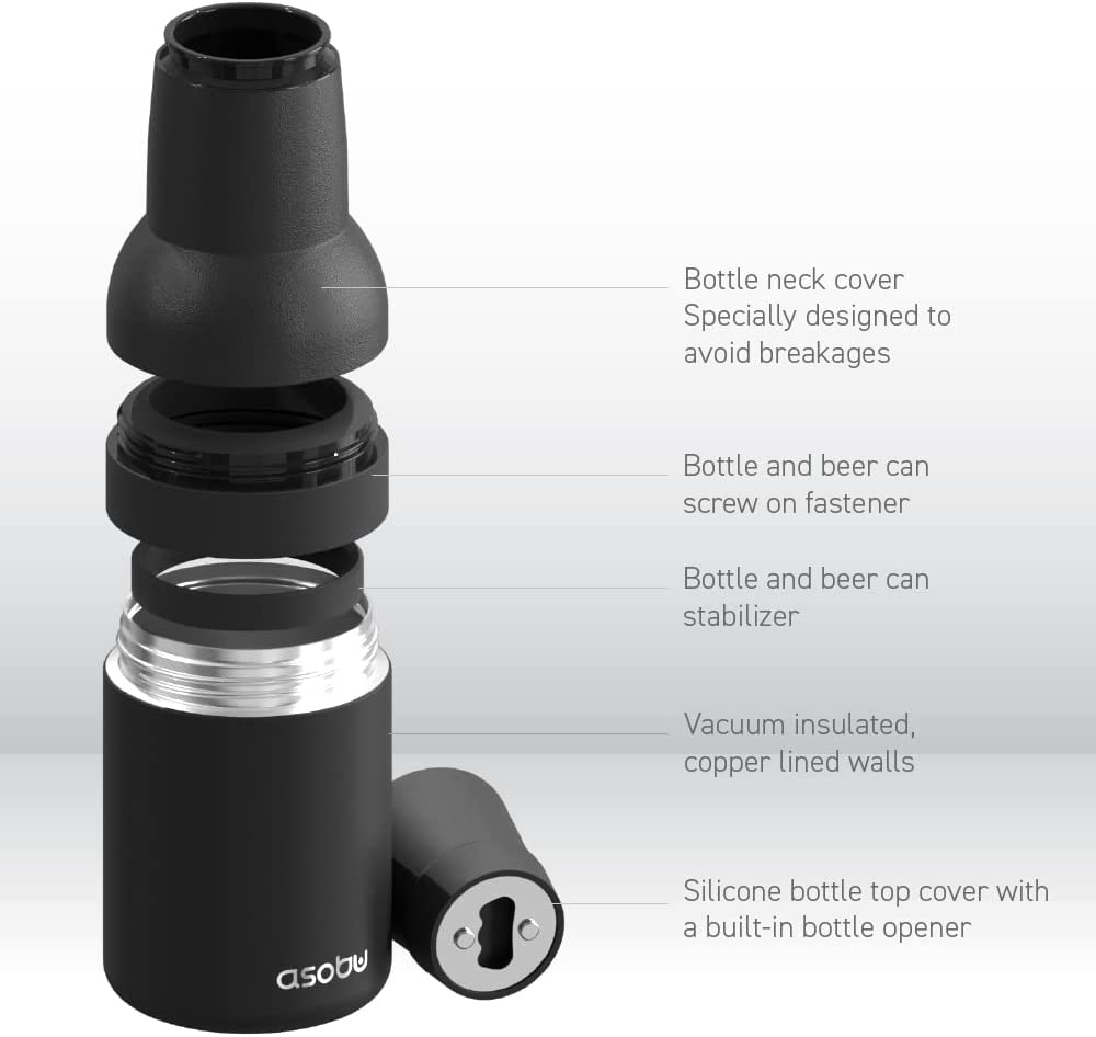 INSULATE THE ENTIRE BOTTLE The Vacuum Insulated Double walled stainless steel construction guarantees a frosty cold beer for hours