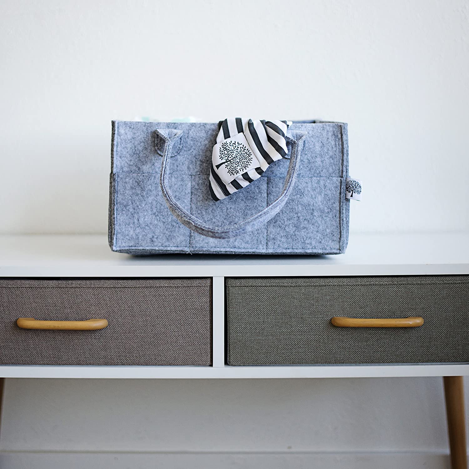 REMOVABLE ORGANIZER INSERT - Remove the diaper organizer insert to use as a toy storage bin, baby hamper or nursery basket for additional nursery storage. Our lightweight, portable diaper caddy is 13 x 9 x 7" (Regular Size) and made of soft felt and features sturdy outer pockets for additional baby storage.