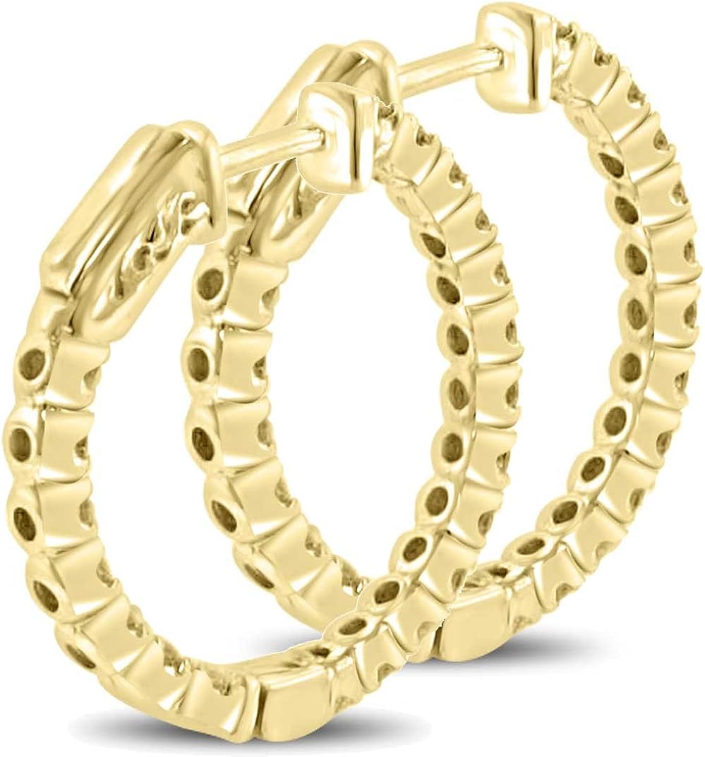 Madina Jewelry 2.10 ct Ladies Round Cut Diamond Hoop Huggie Earrings in Yellow Gold