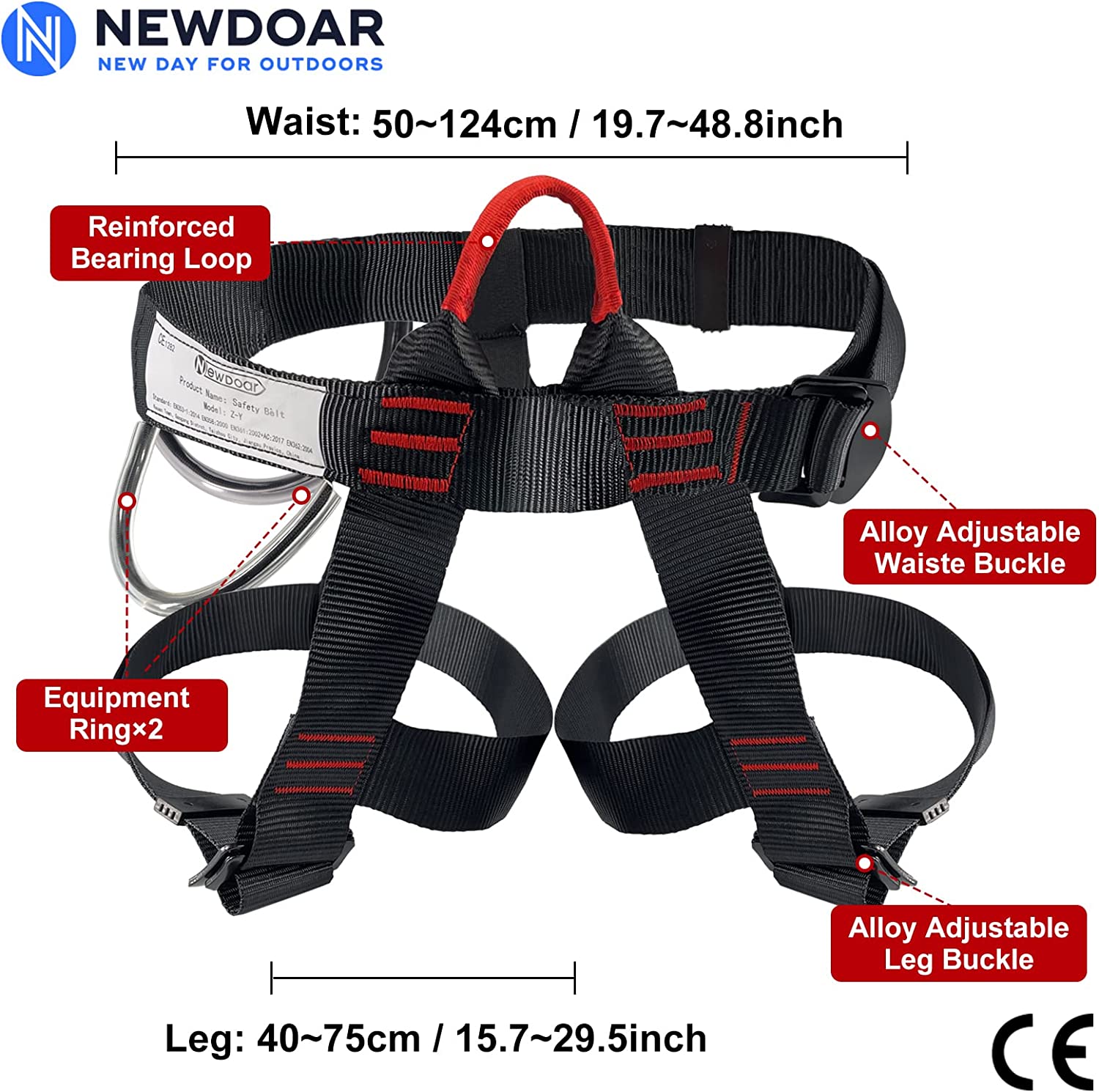NewDoar Climbing Harness, Mountaineering Rock Climbing Harness, Half Body Harness for Rappelling Fire Rescuing Tree Climbing