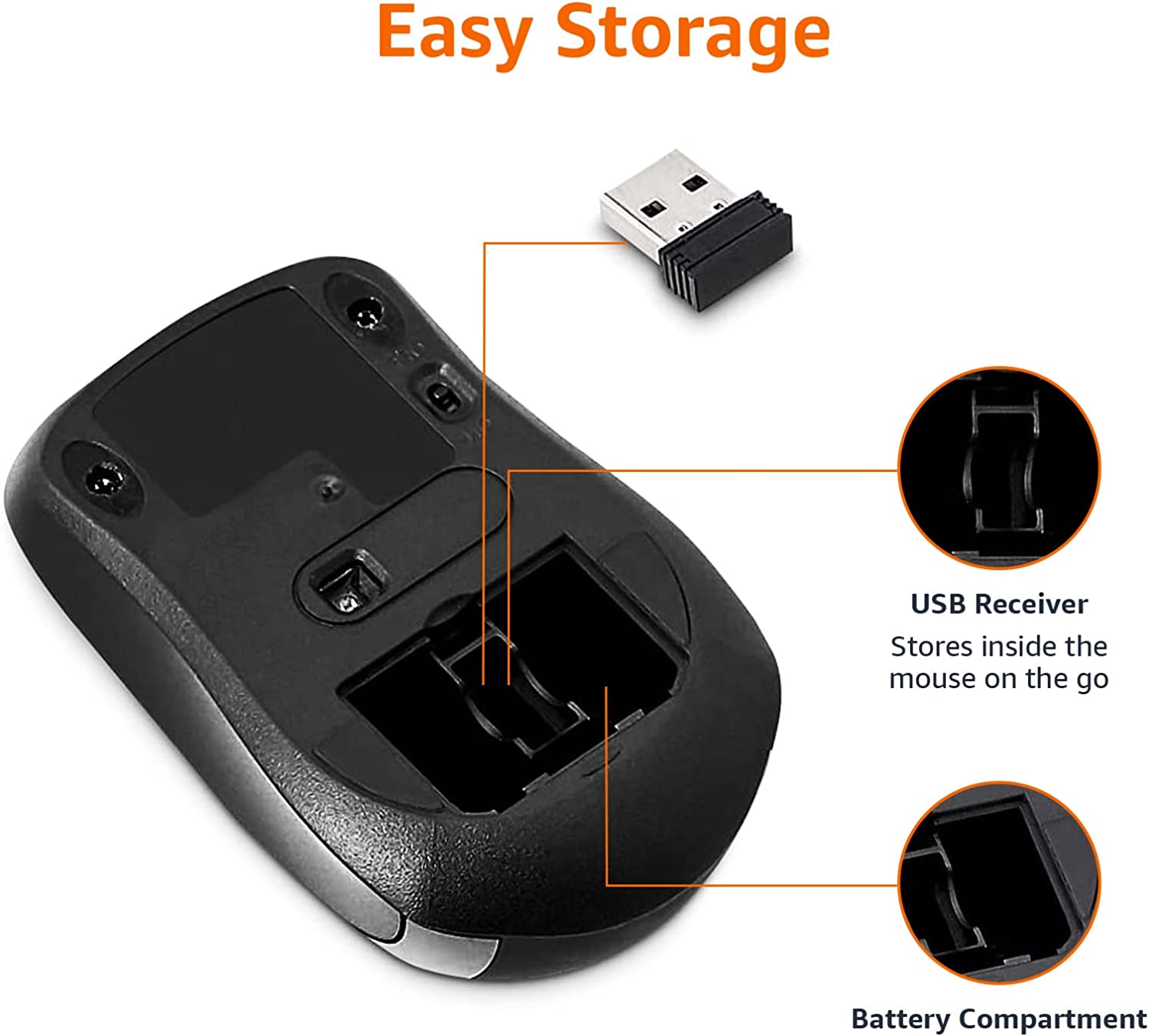 • Nano-receiver stays in the PC USB port or stows conveniently inside the wireless mouse when not in use (note: Receiver is stored within the mouse from production and needs to be removed upon setup)