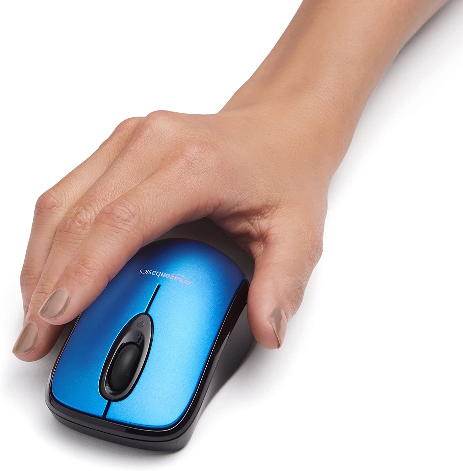 Amazon Basics Wireless Computer Mouse with USB Nano Receiver - Blue