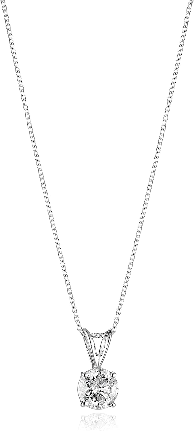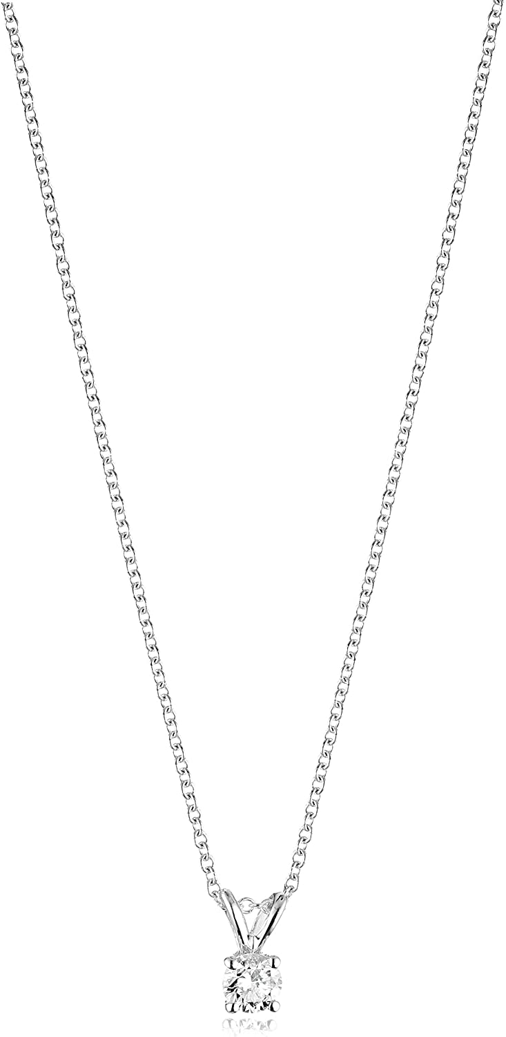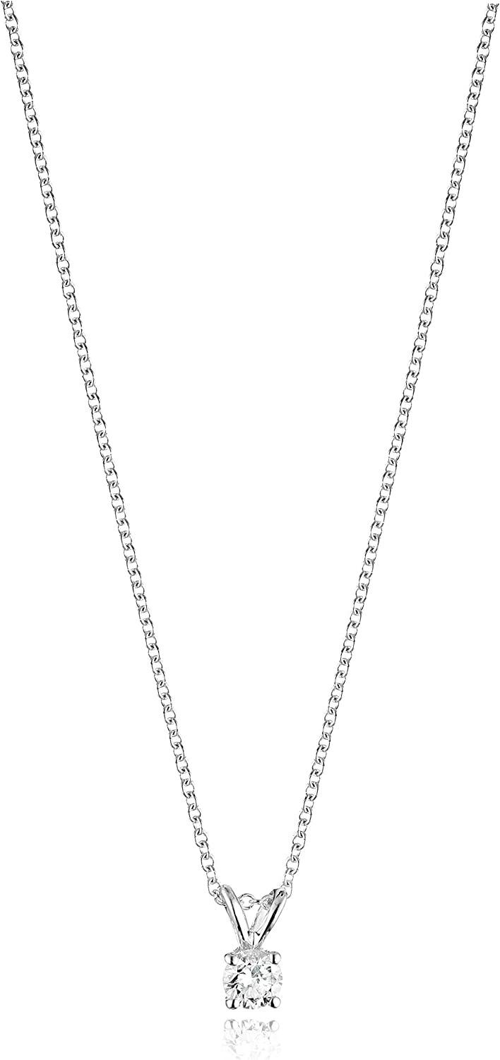 Classic solitaire pendant features a diamond nestled in a four-prong setting