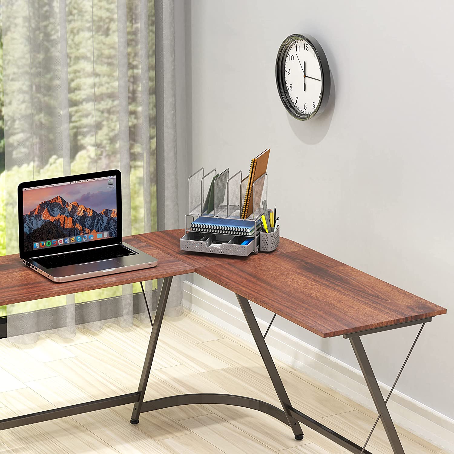MaxGear Mesh Desk Organizer Office Desktop Organizer with Drawer, Metal Stationary Organizer Black Desk Caddy, 6 Compartments, 8.7 x 5.5 x 5 inch, 1 Pack