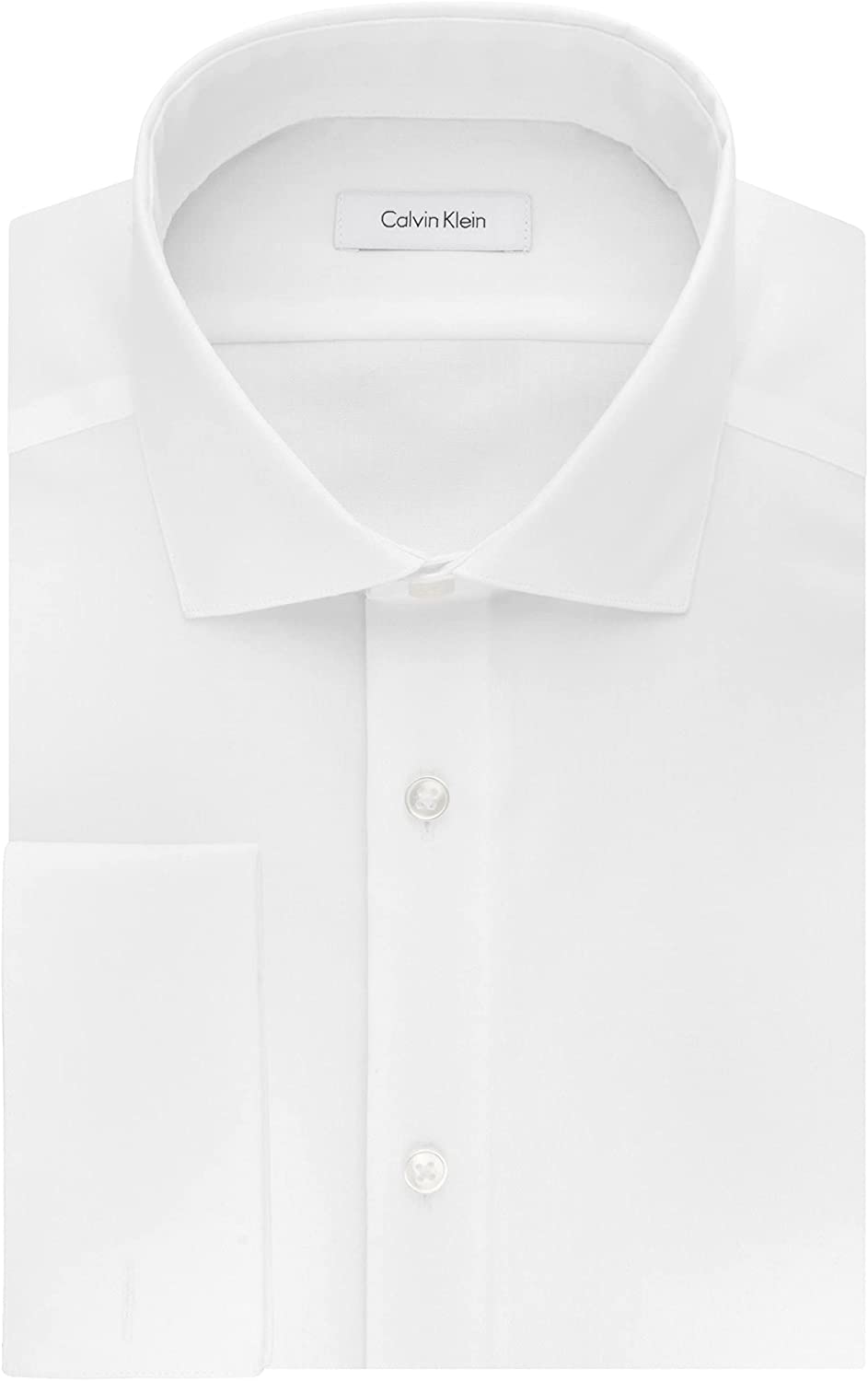 Calvin Klein Men's Dress Shirt Slim Fit Non Iron Herringbone French Cuff
