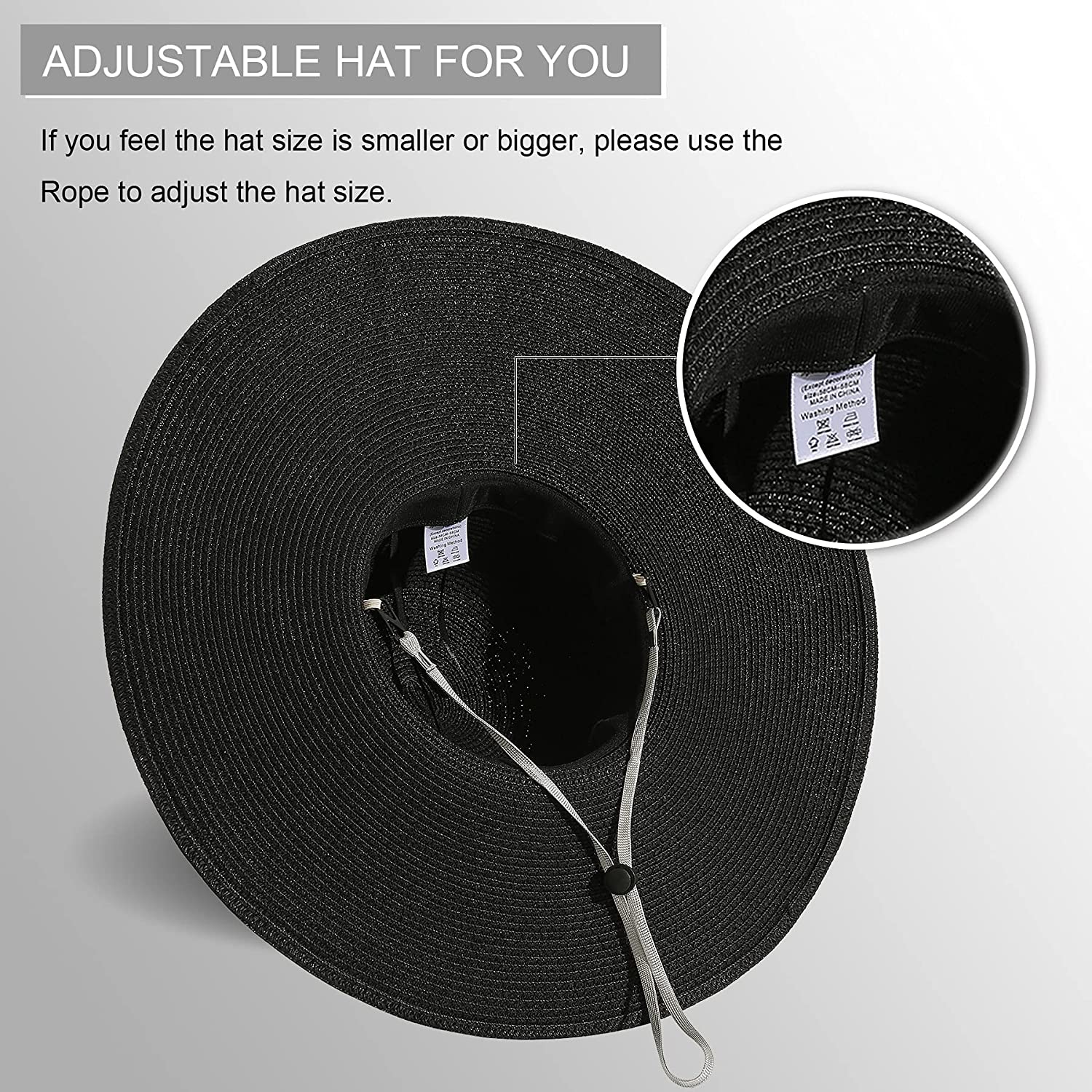 Womens Wide Brim Straw Hat Floppy Foldable Roll up Cap Beach Sun Hat UPF 50+