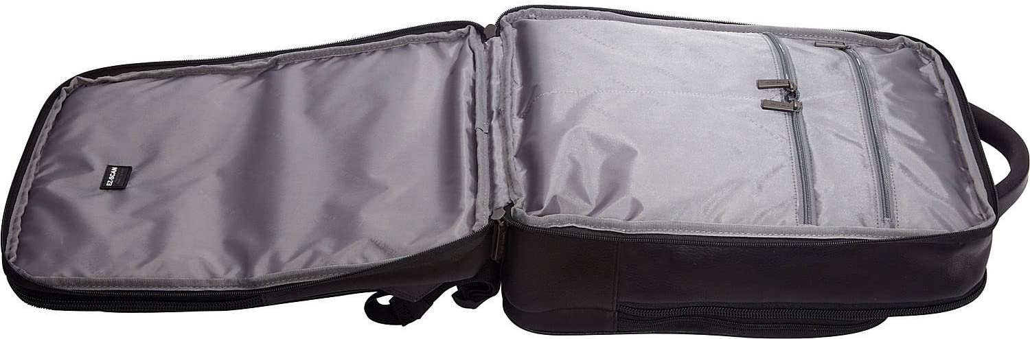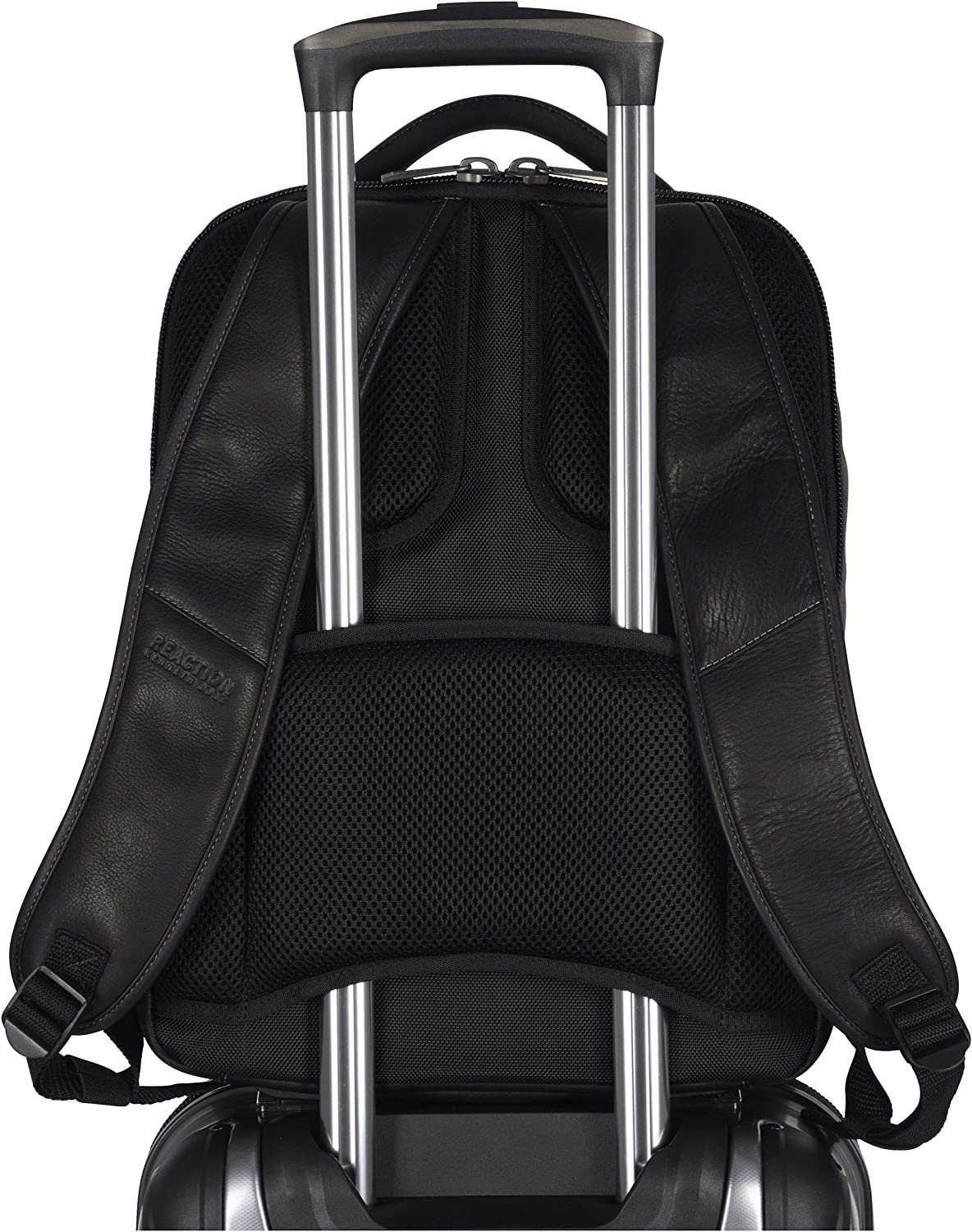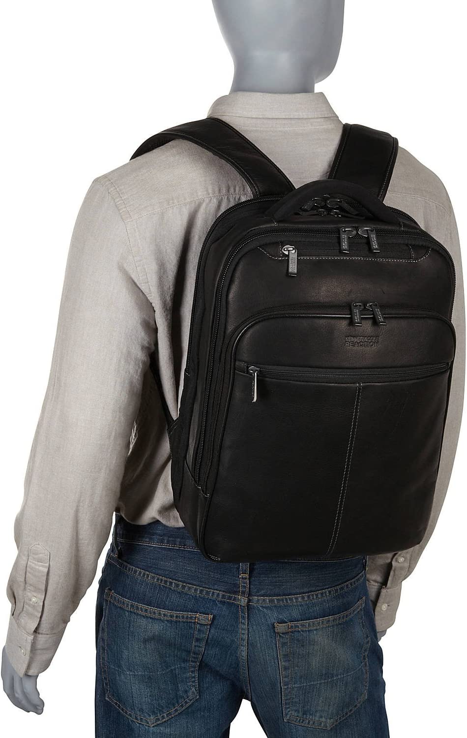 Look cool, calm, and collected with this Kenneth Cole Reaction 'Manhattan' collection full-grain, Colombian leather, slim double compartment EZ-scan TSA checkpoint friendly 16” laptop computer travel backpack. Perfect slim laptop backpack for professionals, work, business, travel, school, college, students, and daily commuters. Designed with travel in mind, the bag Includes a checkpoint-friendly/ EZ-scan feature that complies with TSA guidelines so your laptop does not need to be removed when passing through airport security checkpoints, allowing you to get on your way faster. Holds most laptops with up to a 16” screen and features a separate, padded tablet pocket that fits most tablets with up to a 12.1” screen. Made of a full grain cowhide leather exterior body material, along with the fully lined interior that keeps you looking polished and professional. The front exterior includes a small zipper pocket, lined with brushed soft polyester to protect your valuables, a lower easy-access zipper pocket, and a larger zip down pocket that features an extensive organizer to hold a variety of business essentials (including a padded iPhone pocket and room for a key fob). The well-organized front main compartment features a file pocket, mesh zipper pocket, and a padded tablet pocket. The rear compartment is padded to hold a laptop, and the EZ- scan section includes a full-length zipper pocket, as well as two zippered accessory pockets. An additional secret RFID protected zippered stash pocket can be found on the interior of the lower back padding, helping keep you safe from credit card and Identity theft. A sturdy and comfortable top handle accompanies padded backpack straps with ultra-padded air mesh with an air flow system (AFS), and a trolley tunnel, made to fit over most upright trolley handles. This leather laptop travel backpack is perfect for professionals whom value both style and function. ★ Backed by a manufacturer’s lifetime limited guarantee against defects. ★ Overall Size: 16.25” H x 12.5” L x 6.5” D. ★ Laptop Computer Dimensions: 15.5” H x 11.5” L x 1.5” D. ★ Product Weight: 3.15 lbs. ★